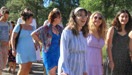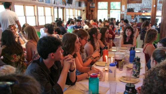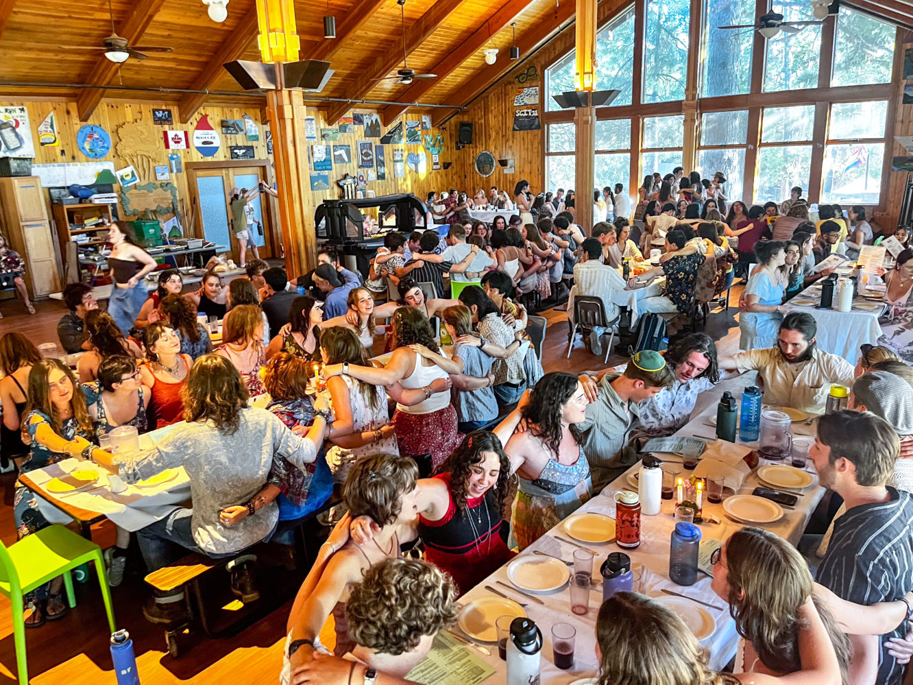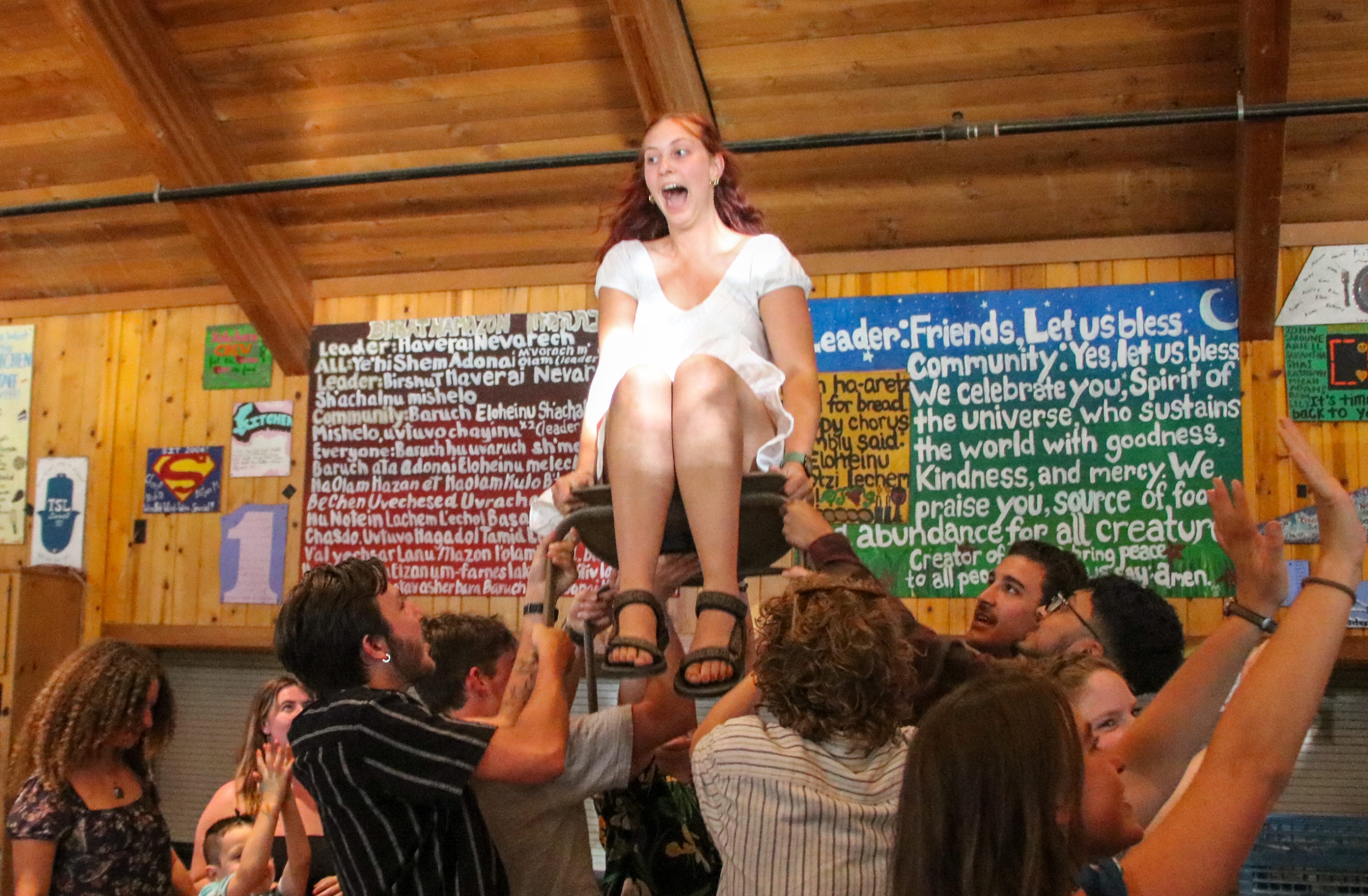 Staff have spent evenings at inspiring campfires, helping to bond together as a community, and participated in improvisation skits, as well as game and art nights. Tonight, they closed out the week with a beautiful community Shabbat celebration, including an energetic freilach, which is our song session on Shabbat.