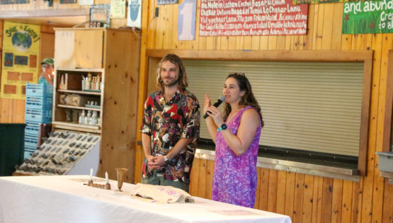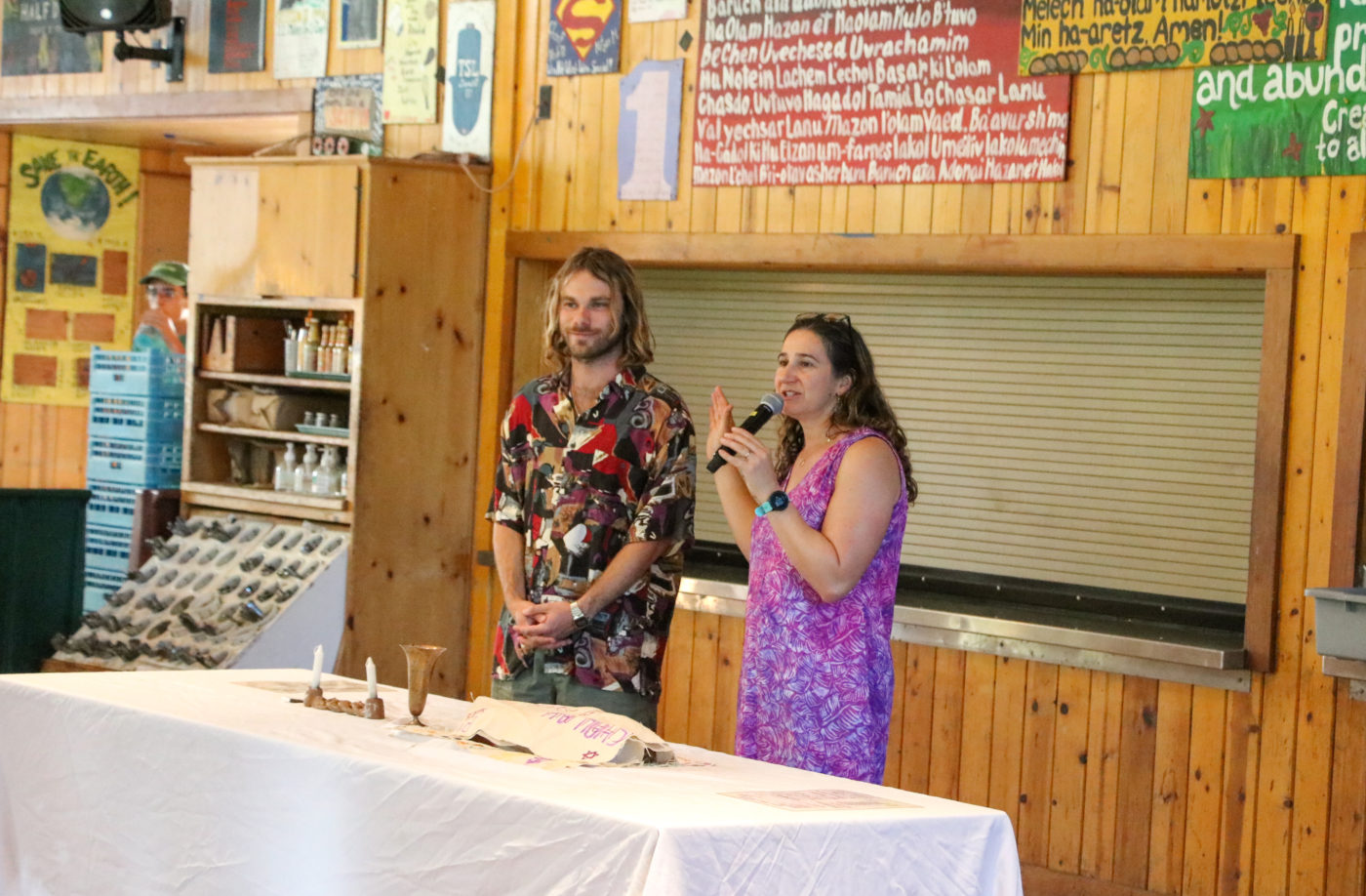 Jewish Program Director Gavin with CEO Becca Meyer leading Shabbat blessings