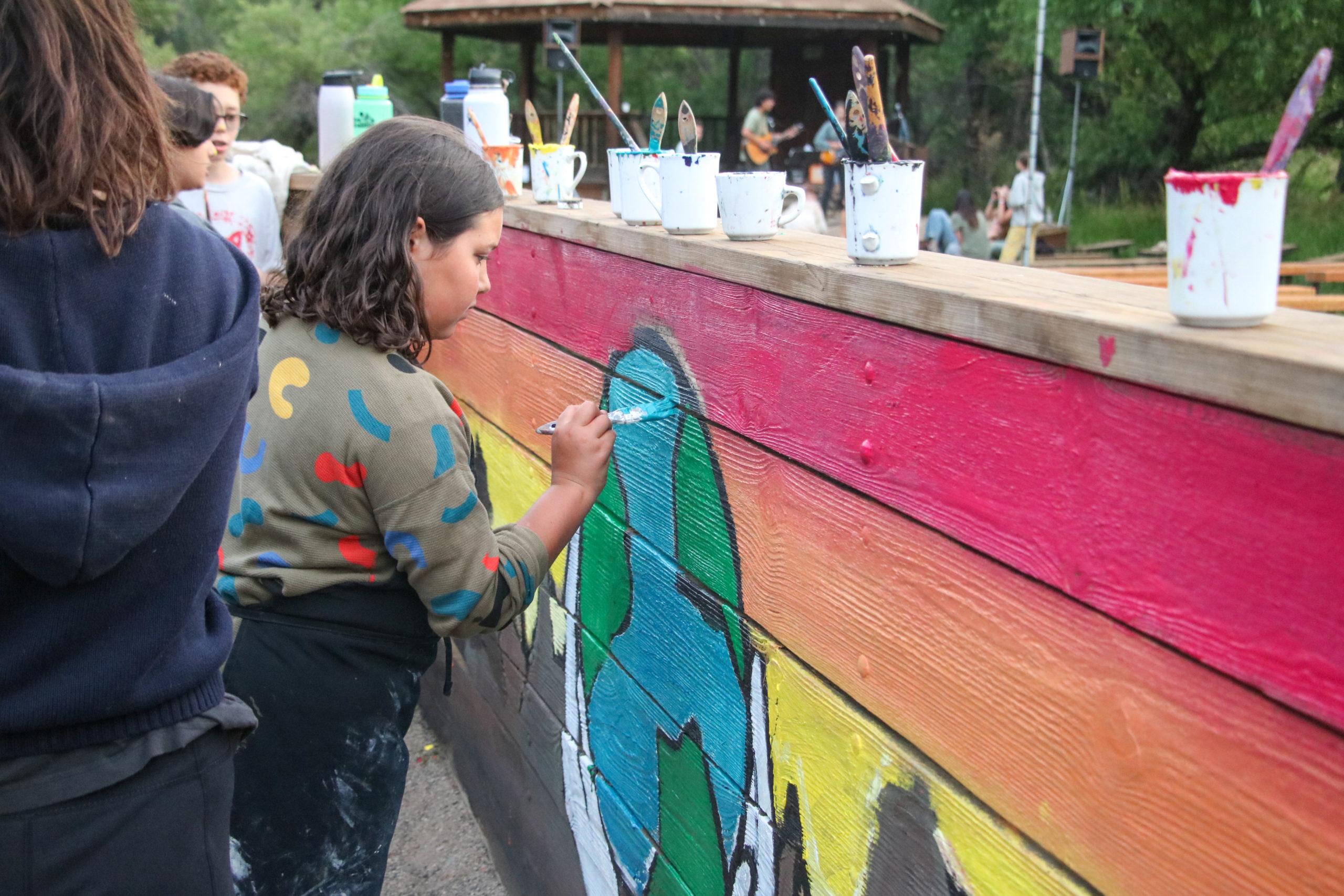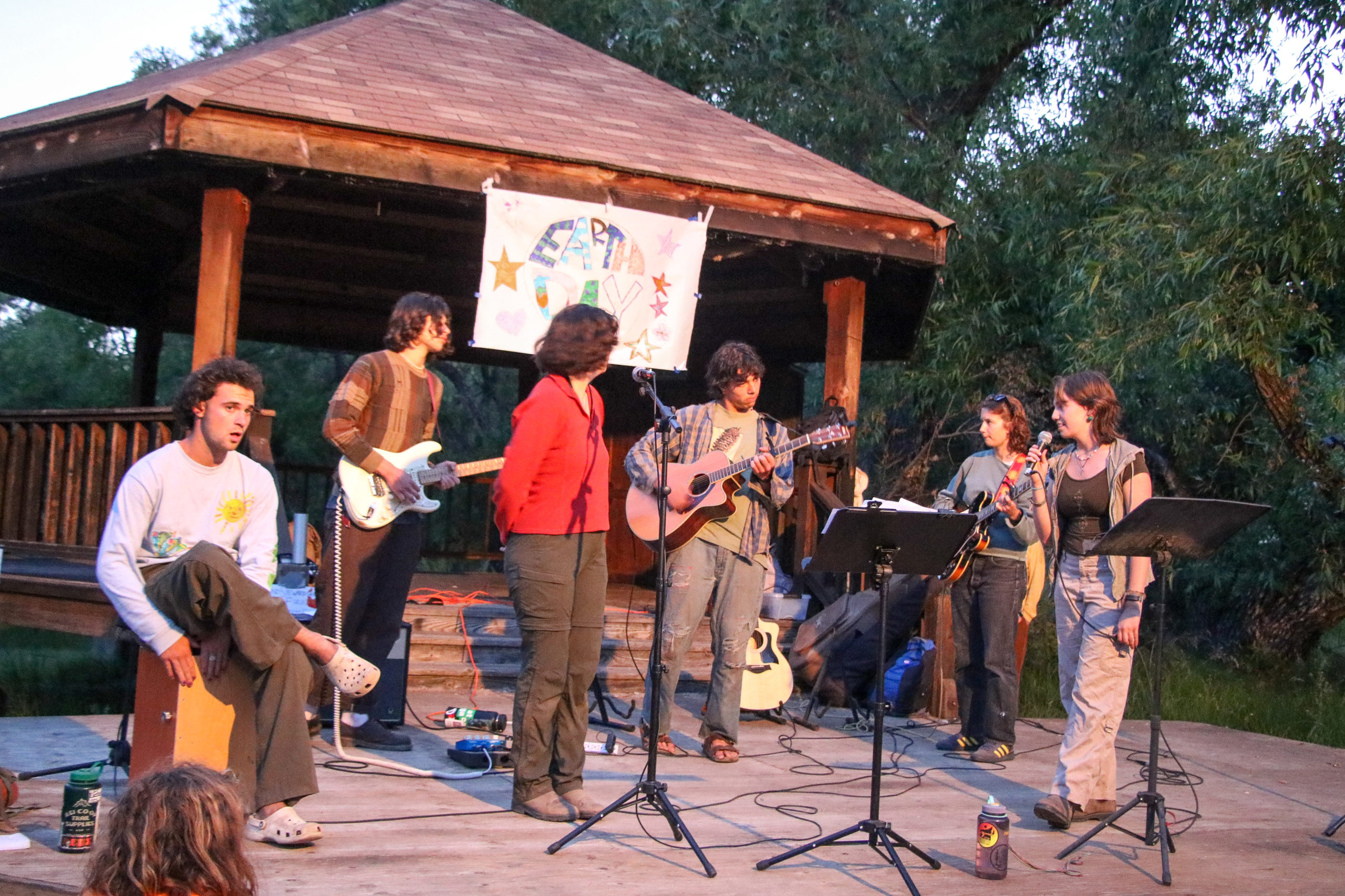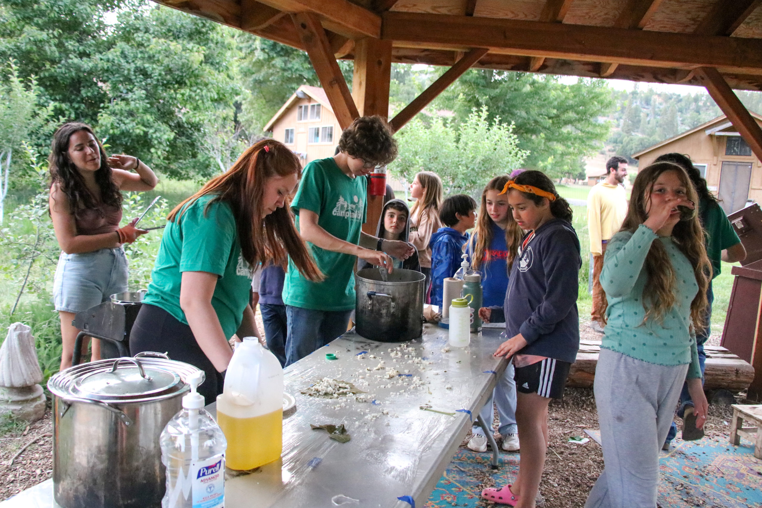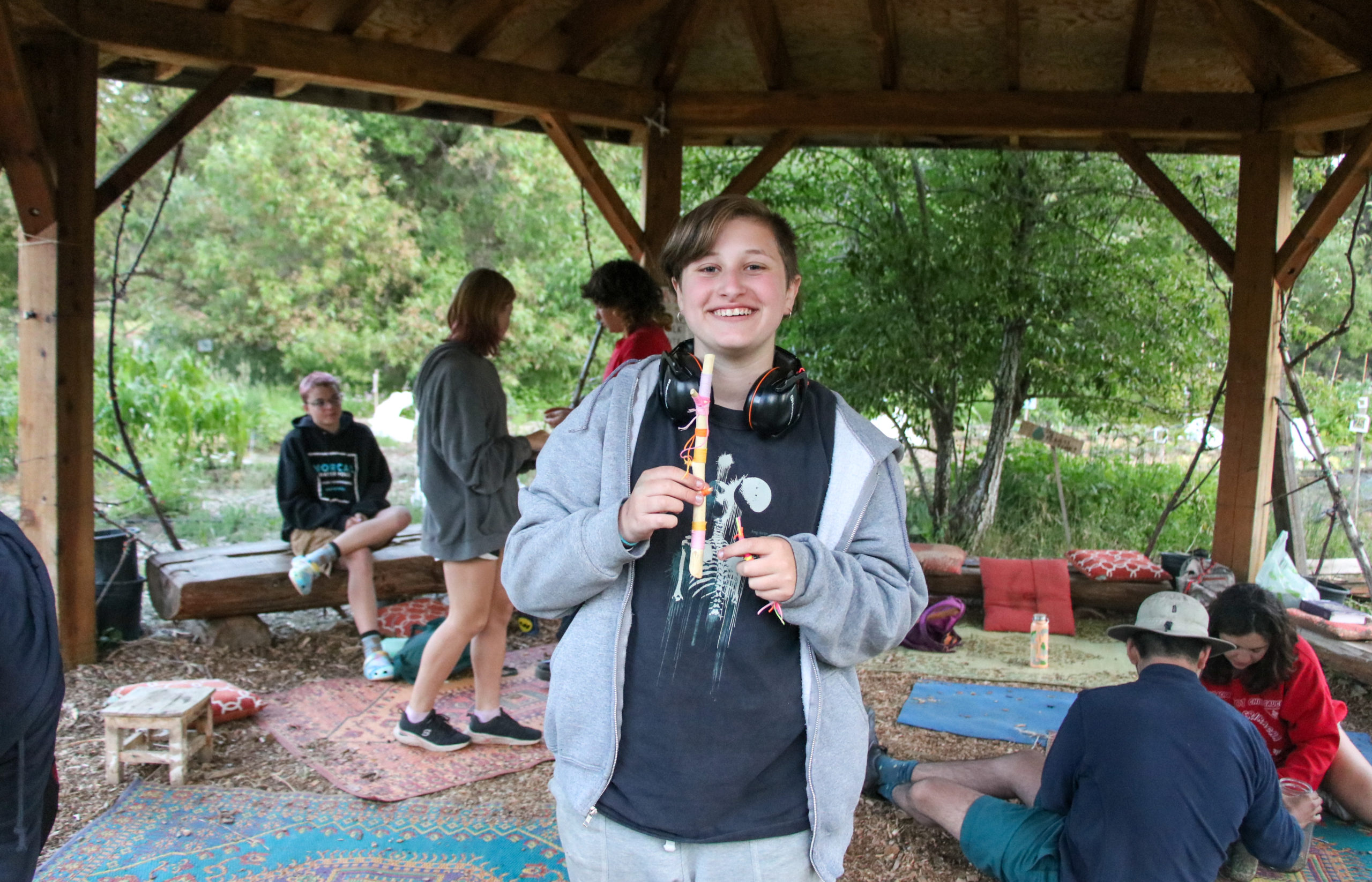 Last night, Session 2’s Tawonga Earth Day featured a variety of stations, including fire building, clay Earth bead making, pine needle tea, dolmas, a watermelon seed spitting contest, mural painting in the gaga pit, tree love notes, yoga, a tag game and natural bug spray. So many options! Earth Tones 2.0 – a staff band – closed out the night with a rocking set.
