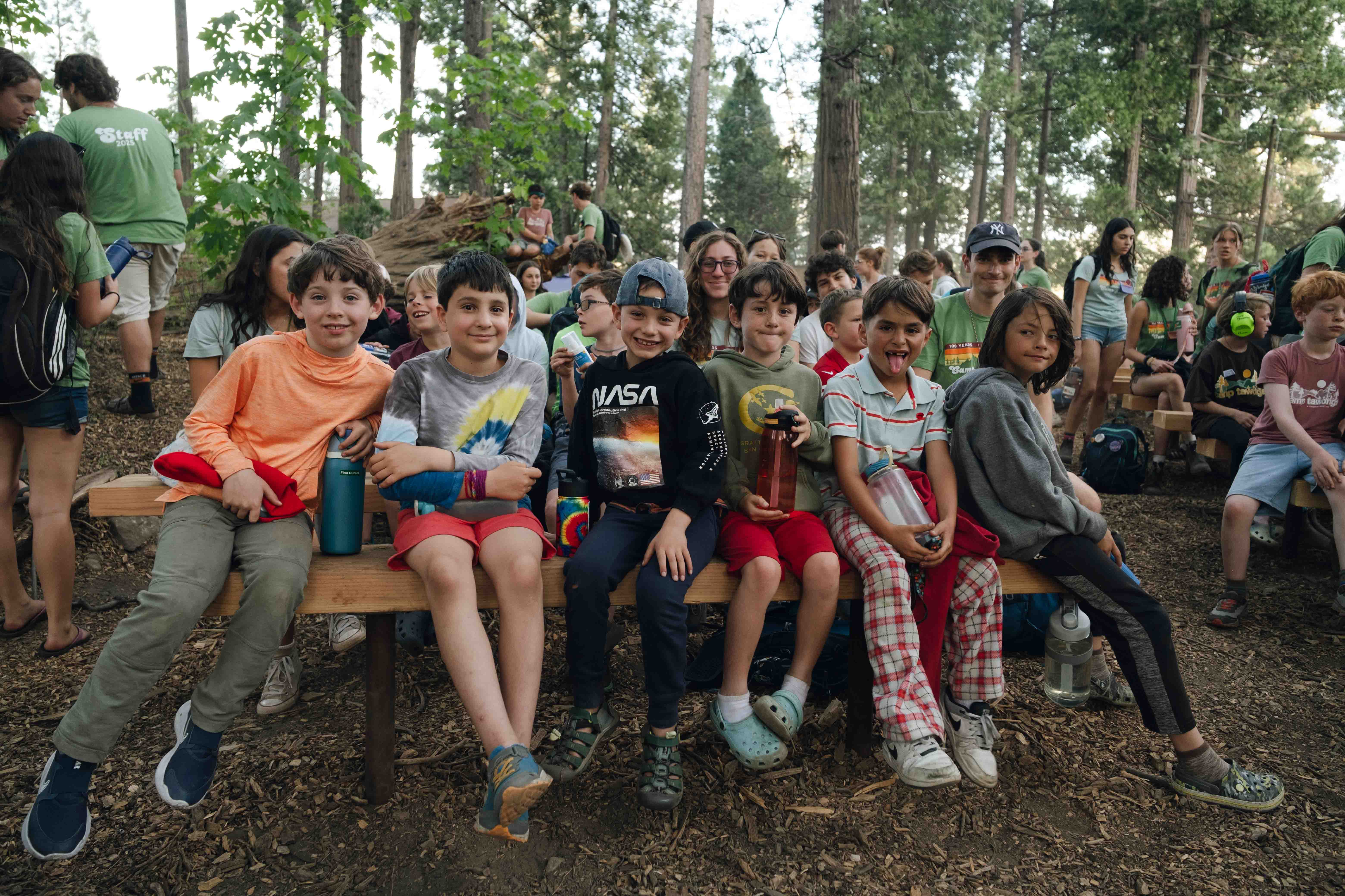 No matter how many summers they’ve been here, every camper kicked things off with a Havurah (friend) hike, getting oriented to Camp and connecting with their bunkmates. By dinnertime, it already felt like these groups had been together for weeks, not hours! A high-energy song session filled the Dining Hall with joy and voices, echoing off the plaque-lined walls and marking the start of a new chapter in Tawonga history.