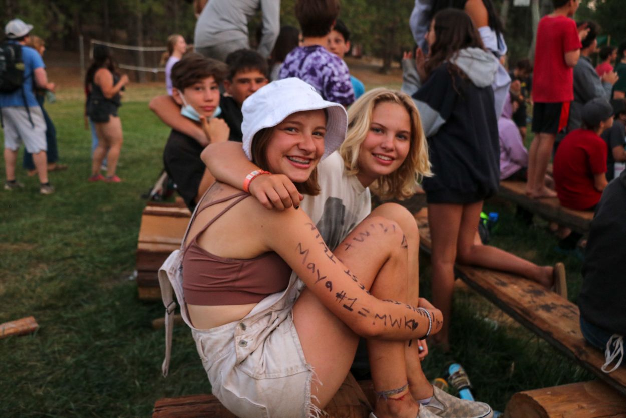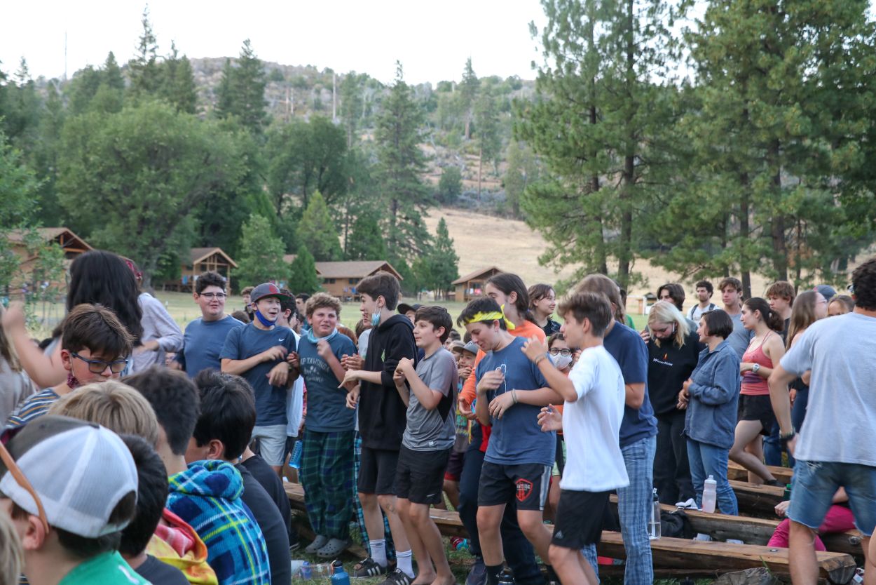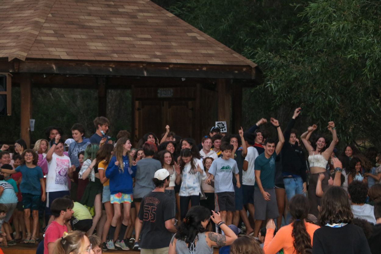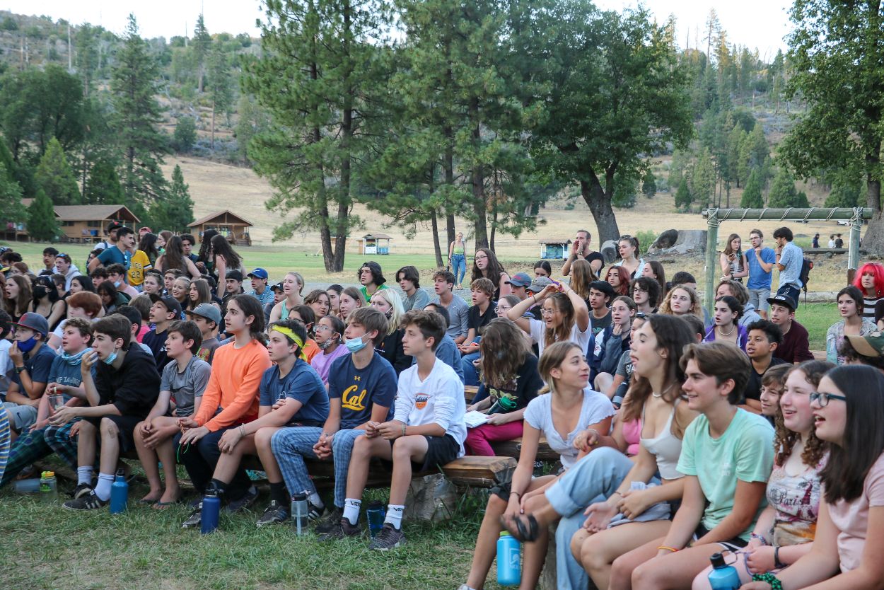 The Camp community is continuing to support each other and honor Eli in meaningful ways. With TLI teens returning from their backpacking trip this afternoon, every Session B camper is in Camp tonight and the community spirit is strong. After a delicious BBQ dinner outside, the whole community participated in a lively campfire at dusk complete with Tawonga favorites including “Ratlan Bog” and “Big Fish, Little Fish”.