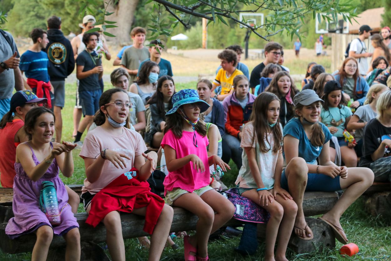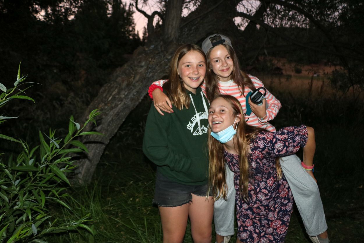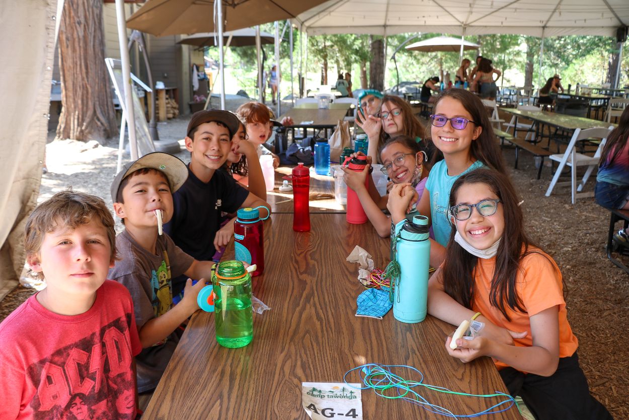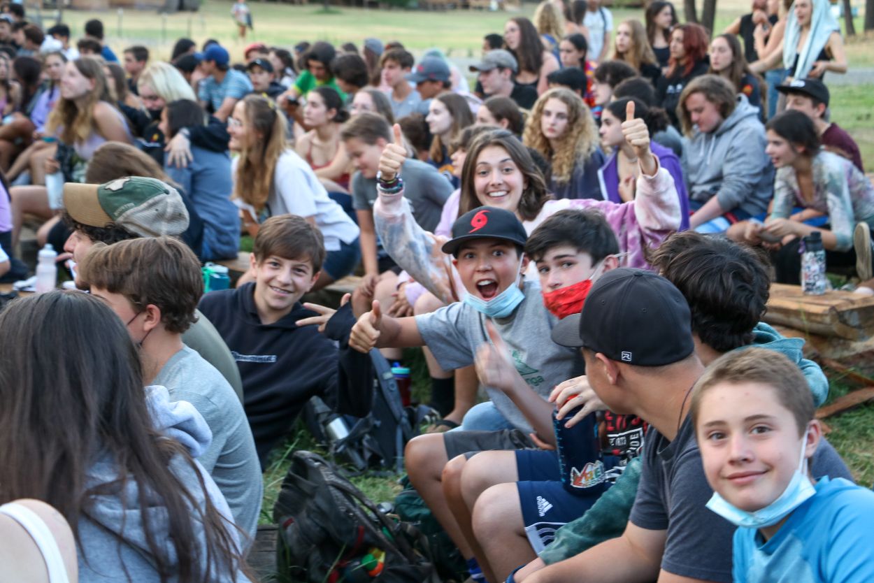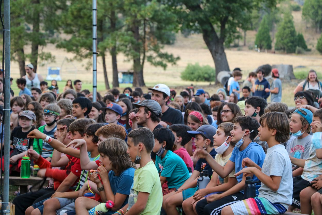 The Camp community is continuing to support each other and honor Eli in meaningful ways. With TLI teens returning from their backpacking trip this afternoon, every Session B camper is in Camp tonight and the community spirit is strong. After a delicious BBQ dinner outside, the whole community participated in a lively campfire at dusk complete with Tawonga favorites including “Ratlan Bog” and “Big Fish, Little Fish”.