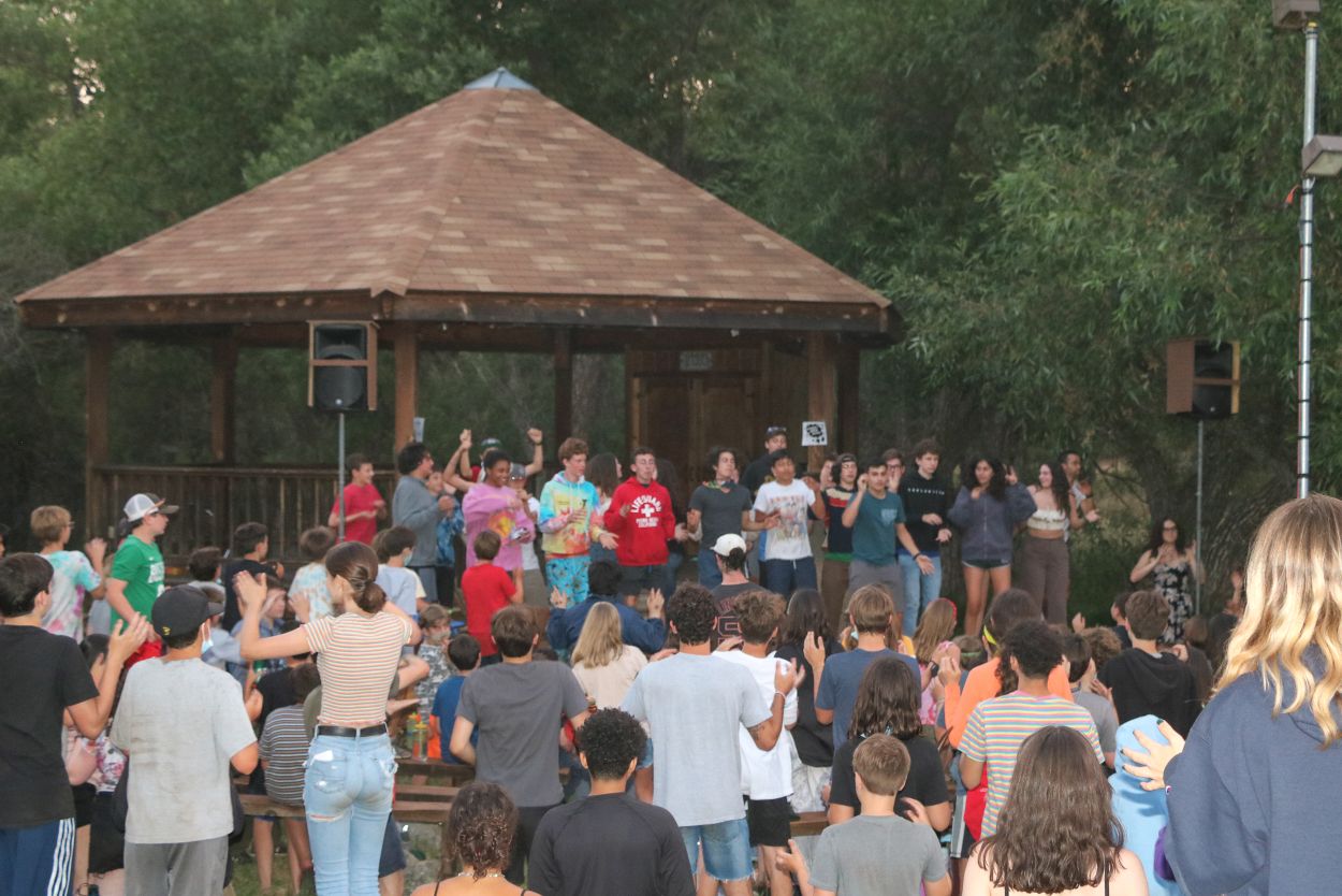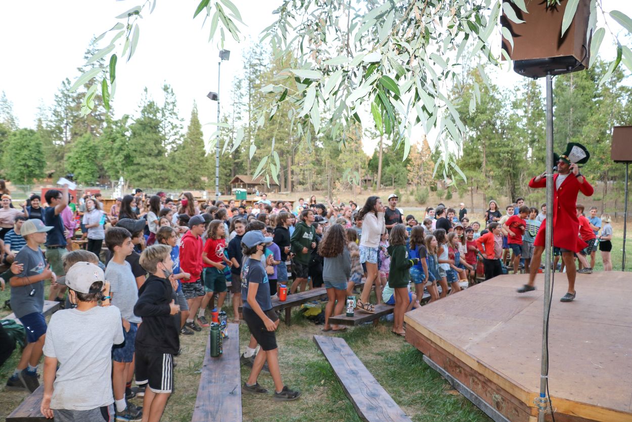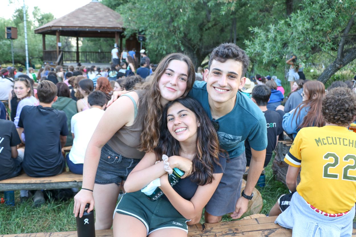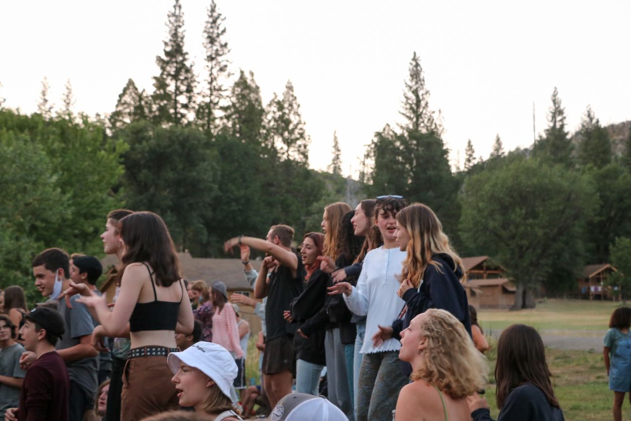 The Camp community is continuing to support each other and honor Eli in meaningful ways. With TLI teens returning from their backpacking trip this afternoon, every Session B camper is in Camp tonight and the community spirit is strong. After a delicious BBQ dinner outside, the whole community participated in a lively campfire at dusk complete with Tawonga favorites including “Ratlan Bog” and “Big Fish, Little Fish”.