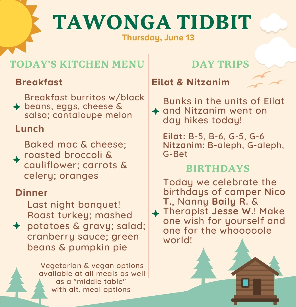 Taste campers have spent the past week bonding with their bunkmates, roasting s’mores, crafting, singing, dancing, hiking, stargazing and so much more. Ultimately, every camper immersed in the Tawonga mission: growing their self esteem, connecting to cooperative community, strengthening their Jewish identities and fostering a partnership with nature.