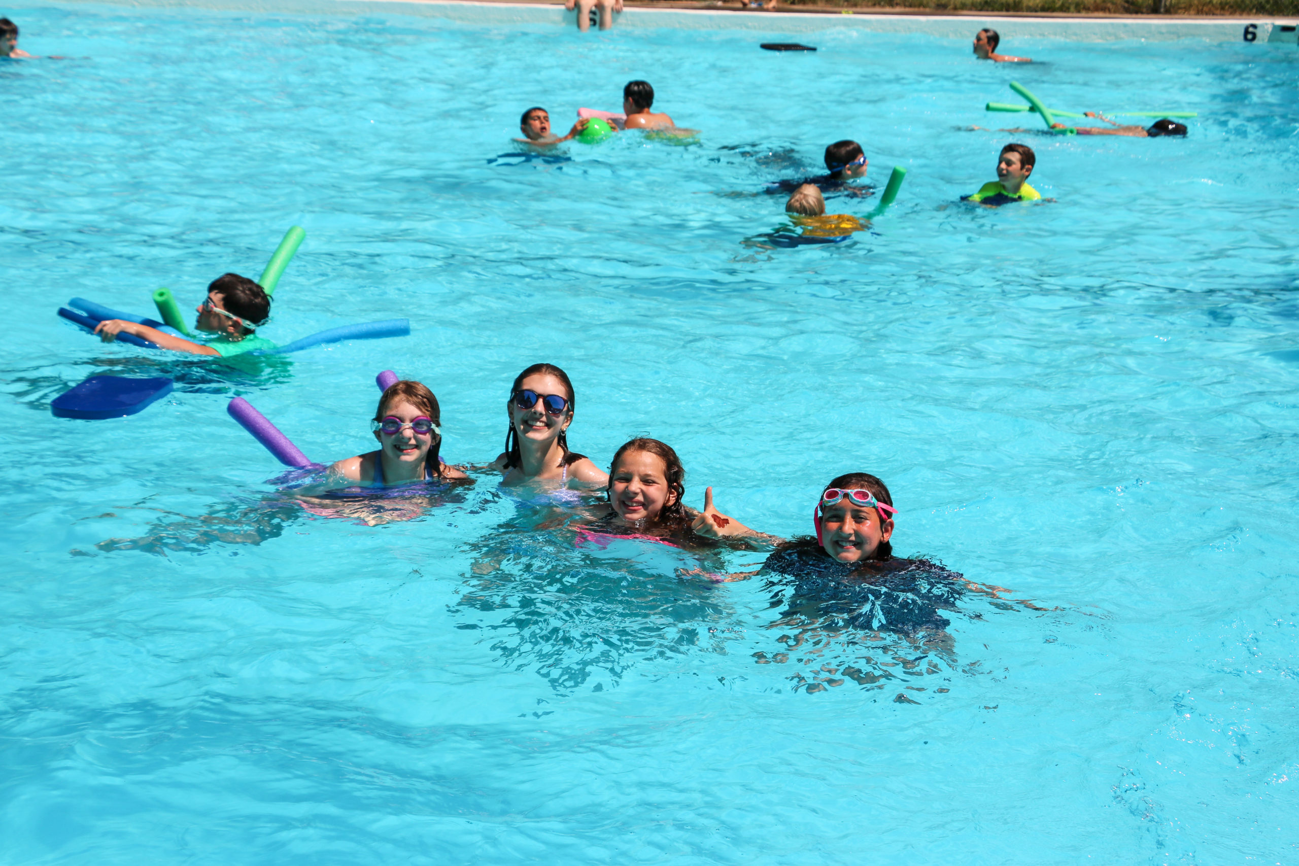 In the morning, campers work together as a bunk to build trust and to collaborate through the challenges of the “low” elements, which consist of activities and or games that don’t require harnesses and helmets, designed to get them ready for the climbing to come. After lunch campers are introduced to several of the “high” elements and work together with each other and the facilitators to choose their challenge! Below, check out photos from the Challenge Course today, in addition to free swim, floats, and other fun activities!