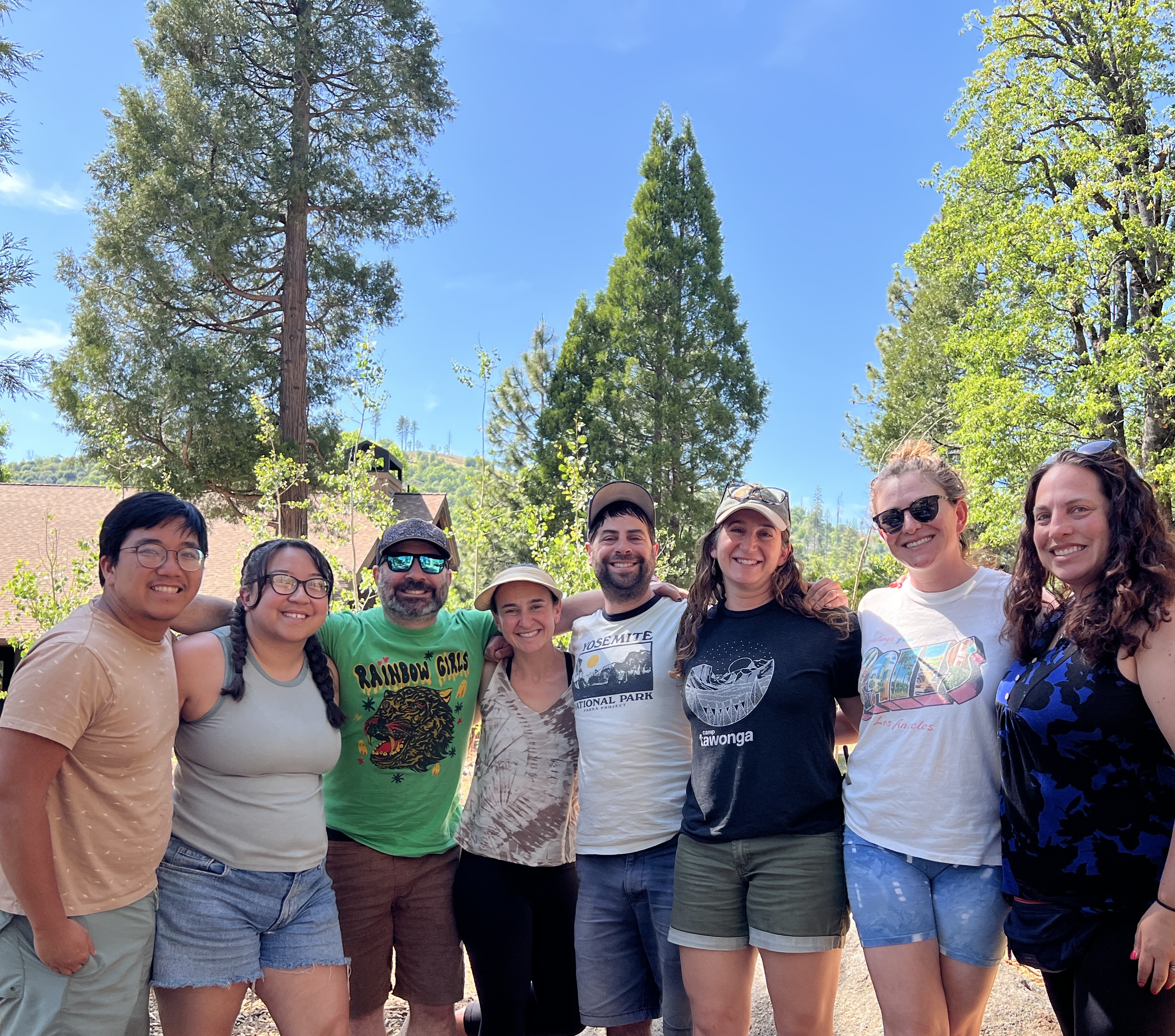 Most of our At-Camp Director Team: (from left) Quan Phung, Luisa Santana-Farias, Brady Gill, Ashley Costello, Aaron Mandel, Becca Meyer, Aviva Maslow, and Ryley Katz; not pictured Frisco Goldstein, Kiyomi Gelber, Sam Rubin