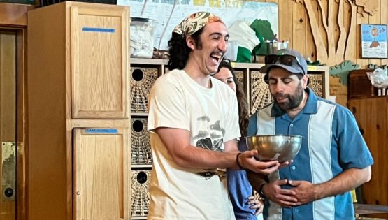 Camp Director, Aaron Mandel, receiving his birthday bowl during Supervisor Training