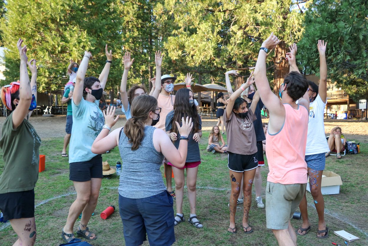 Later in the afternoon, units (bunks of similar-aged cabins) gathered to discuss “Camp T Community.” The culture at Tawonga is supportive and radically inclusive. Unit Heads led discussions about the importance of treating one another with respect and compassion to ensure we uphold this amazing cooperative community. Bunks then divided up for their first activities led by our talented staff specialists. Some groups headed down to the beautiful Tuolumne River, which runs through our property; others played drama games while others searched for frogs.
