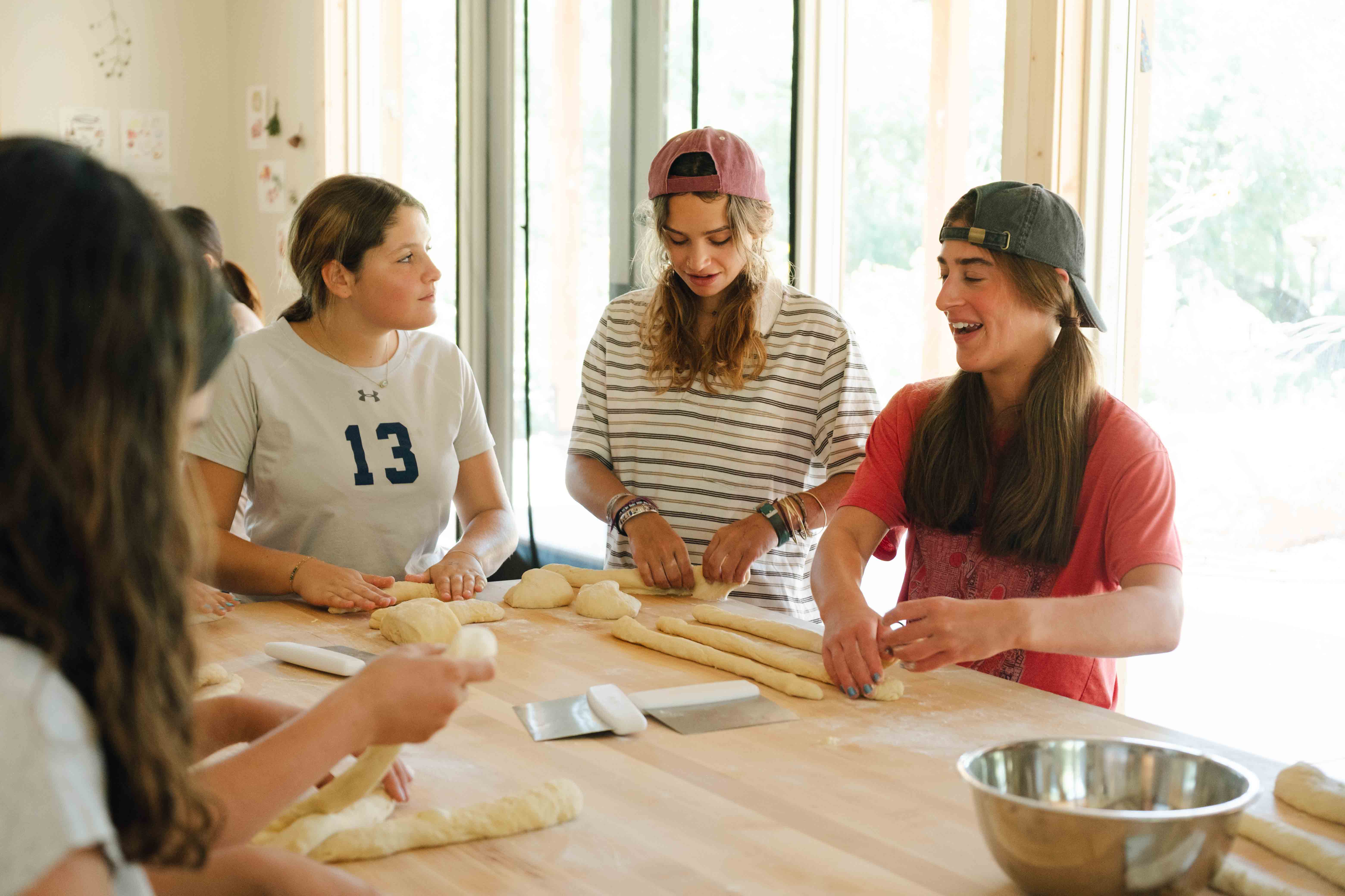 Depending on the dish, the goal may be to share, trade, or contribute to the community. For veggie sushi, campers make rolls to enjoy and swap with friends. For bourekas (a savory Middle Eastern pastry), they bake one to eat and the rest to be served to other campers — an act of care that makes the experience even more meaningful.