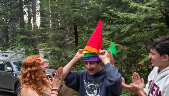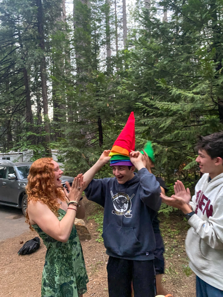 • While giving gratitude during Shabbat dinner, we were greeted by a black bear at our table! We told him our favorite ice cream flavors, but due to his fear of dairy, he ran away! It was a very beary Shabbat sha-“gnome”!