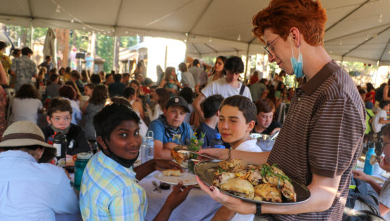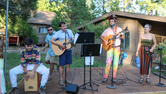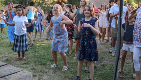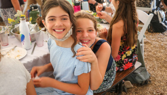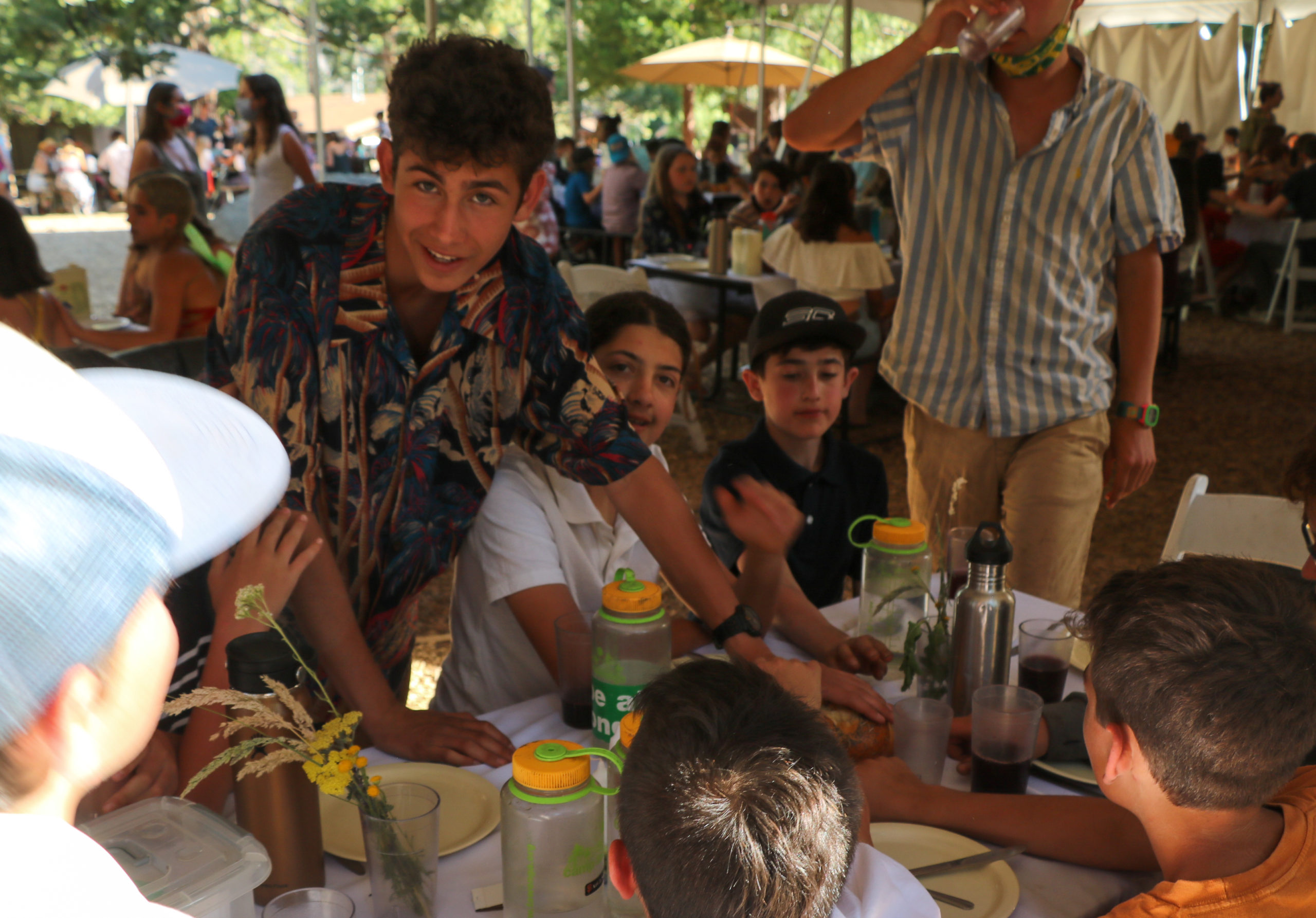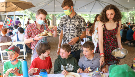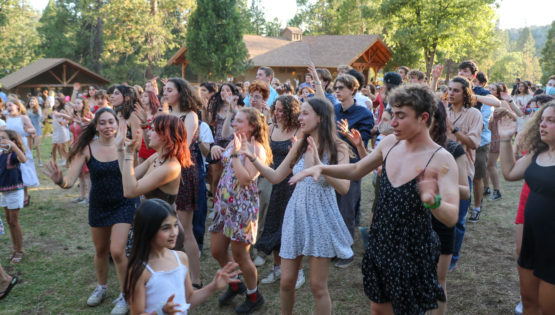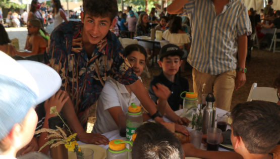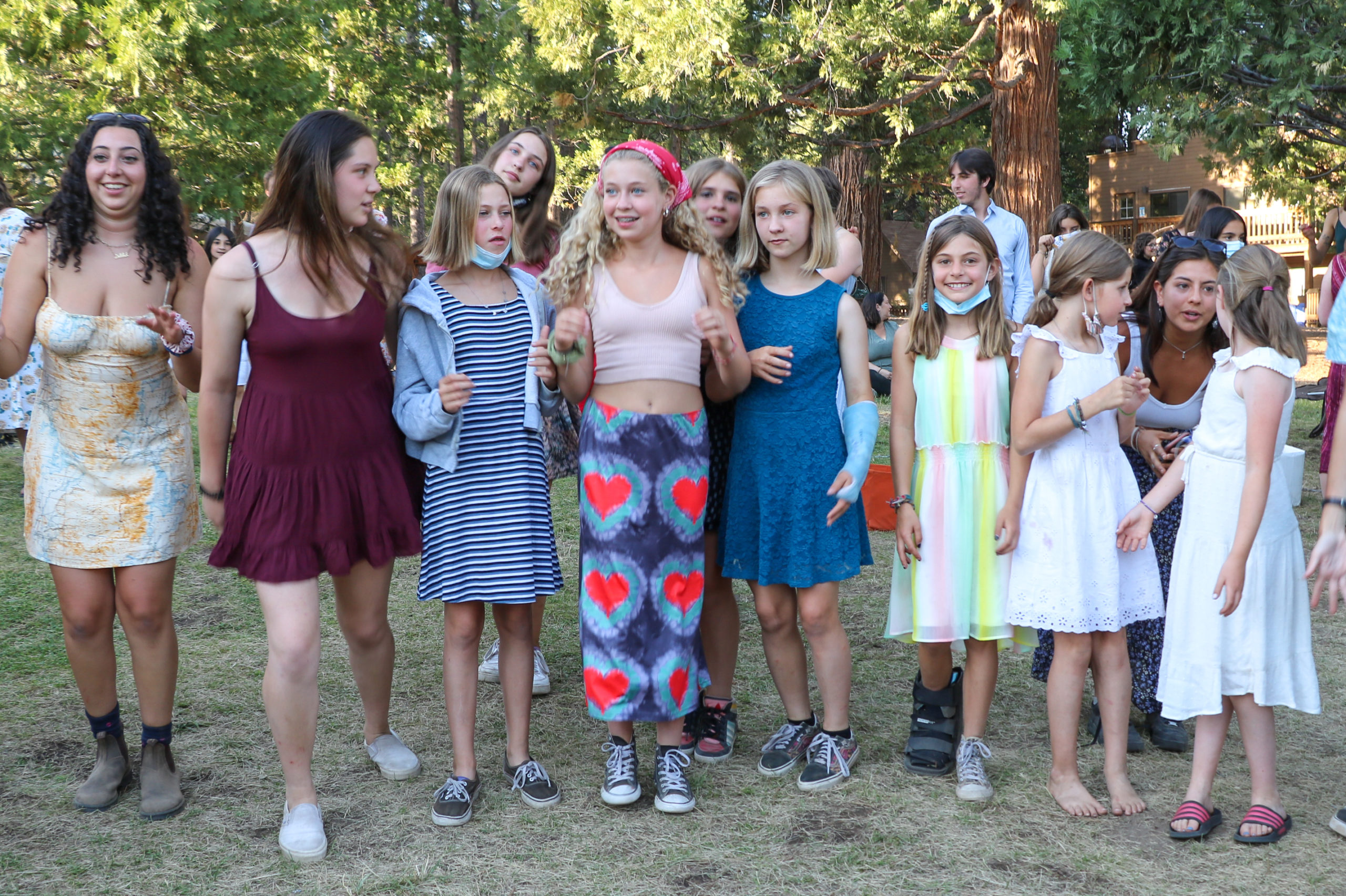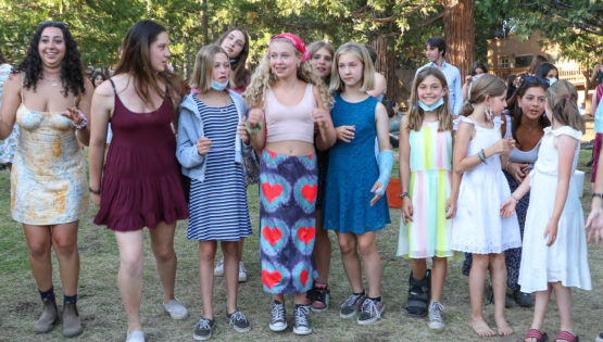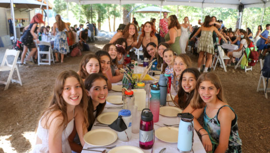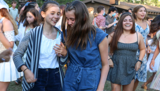 After dinner everyone joined in for a lively freylach on the lawn. To finish the night, each unit participated in Kabbalat Shabbat services where bunks performed skits as an expression of different prayers.