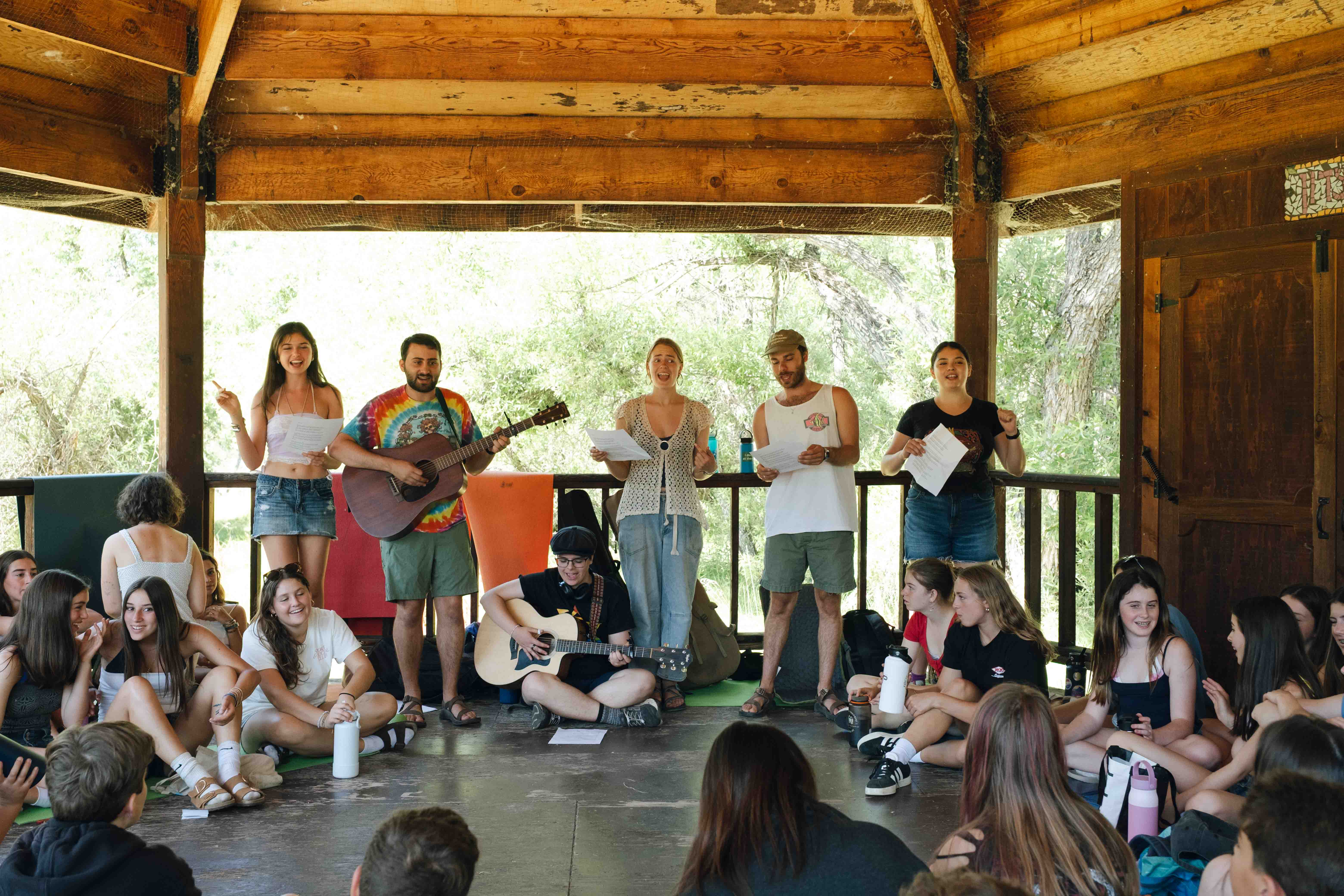 Meanwhile, over at the Moadone, Songleaders and Jewish Programmers led a joyful, silly activity to explore the value of Hachnasat Orchim — the Jewish tradition of welcoming guests. Through songs and skits, campers explored what it means to be warm, kind, and inclusive, especially toward those who are new or in need.