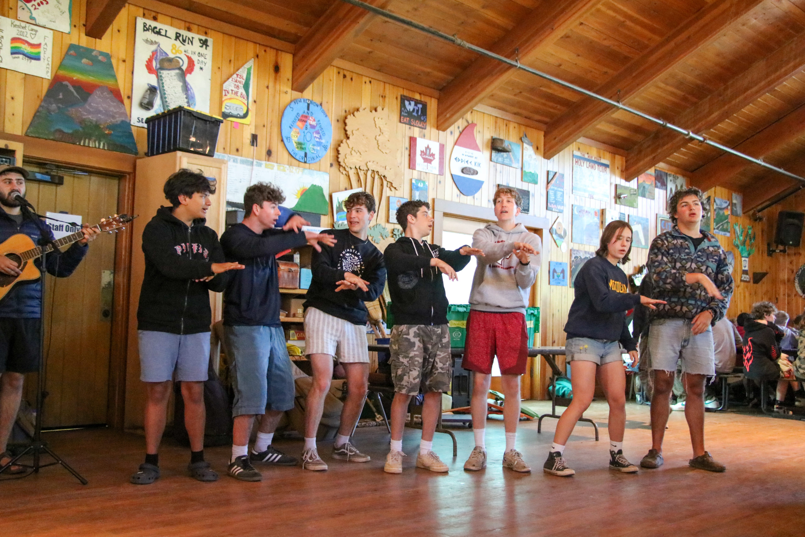 This isn’t just about learning skills; our SITs are applying their skills in real-time, and receive mentorship both from SCIT Program Staff and their area specific staff in their Specialist department. At the same time, they foster personal growth in themselves through active self-reflection as well as the campers with whom they work. One songleading SIT has spent their evening blocks playing guitar and singing camper favorites from our Camp Tawonga songbook to set the tone for a relaxing bedtime. At Tawonga, SITs not only develop proficiency in their department-specific skills but also gain confidence in leadership and interpersonal skills—essential qualities that extend far beyond the Camp community.