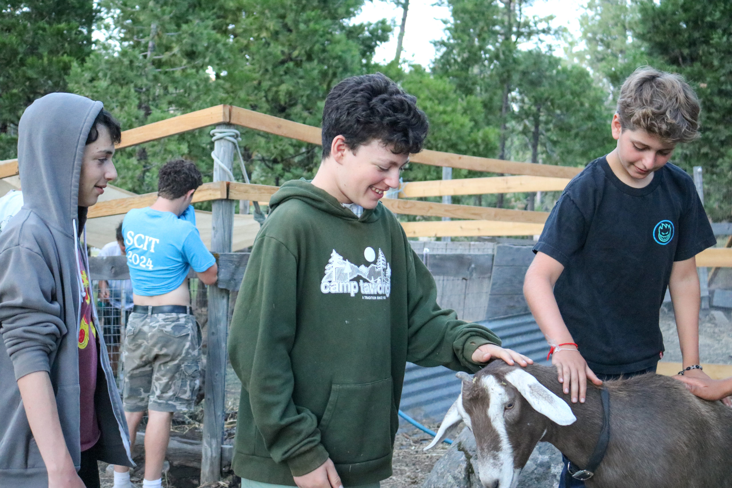 This unity is particularly highlighted in all-camp interactions. SCITs shared their love for goofiness and Tawonga with all of camp during an all-camp campfire, performing many classic and some new campfire skits. SCITs also have a strong presence at Kabbalat Shabbat services around camp. On Friday nights, these services are led by unit, and while CITs are with their bunk’s unit, SITs also join these meaningful community moments.