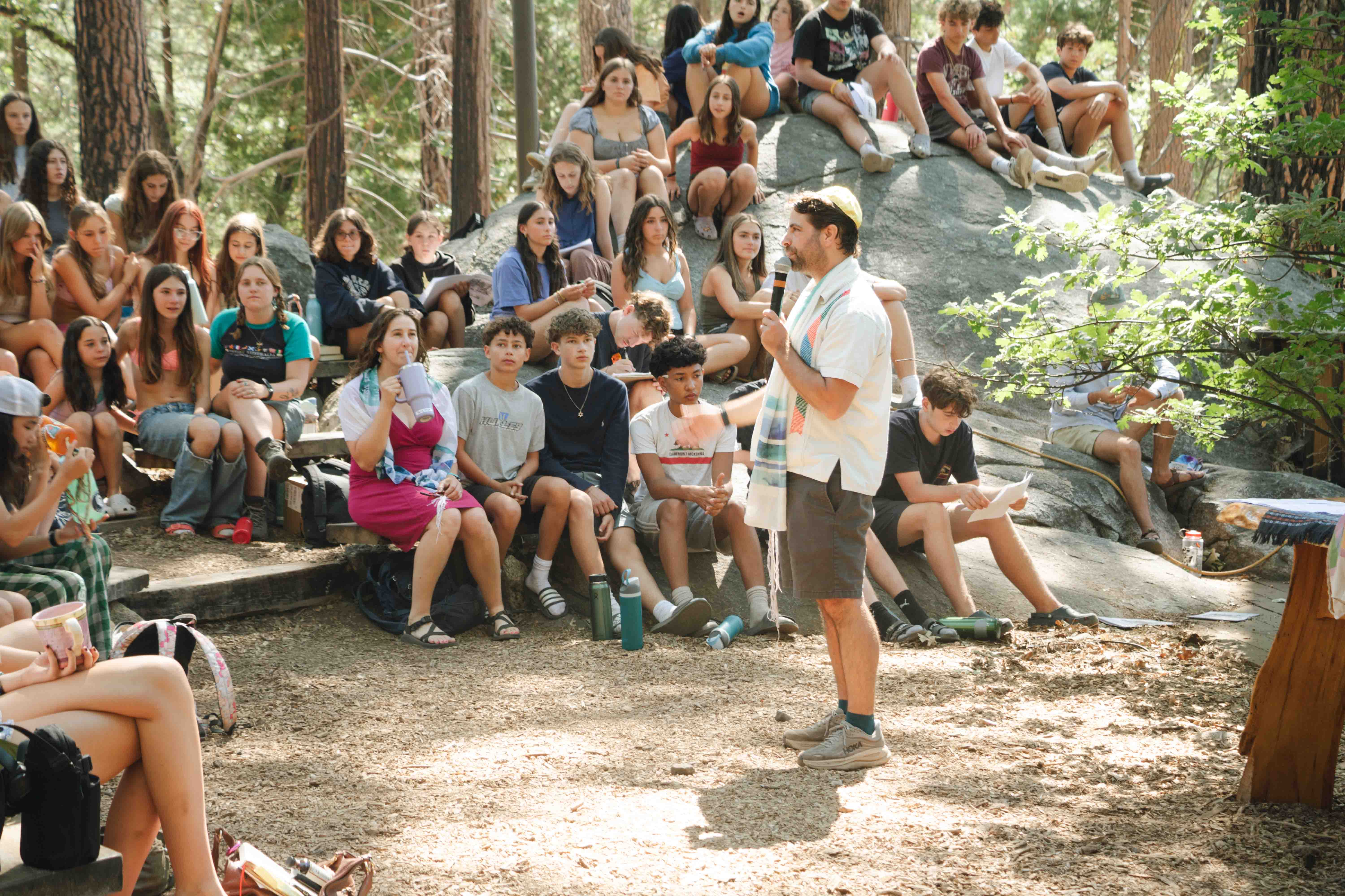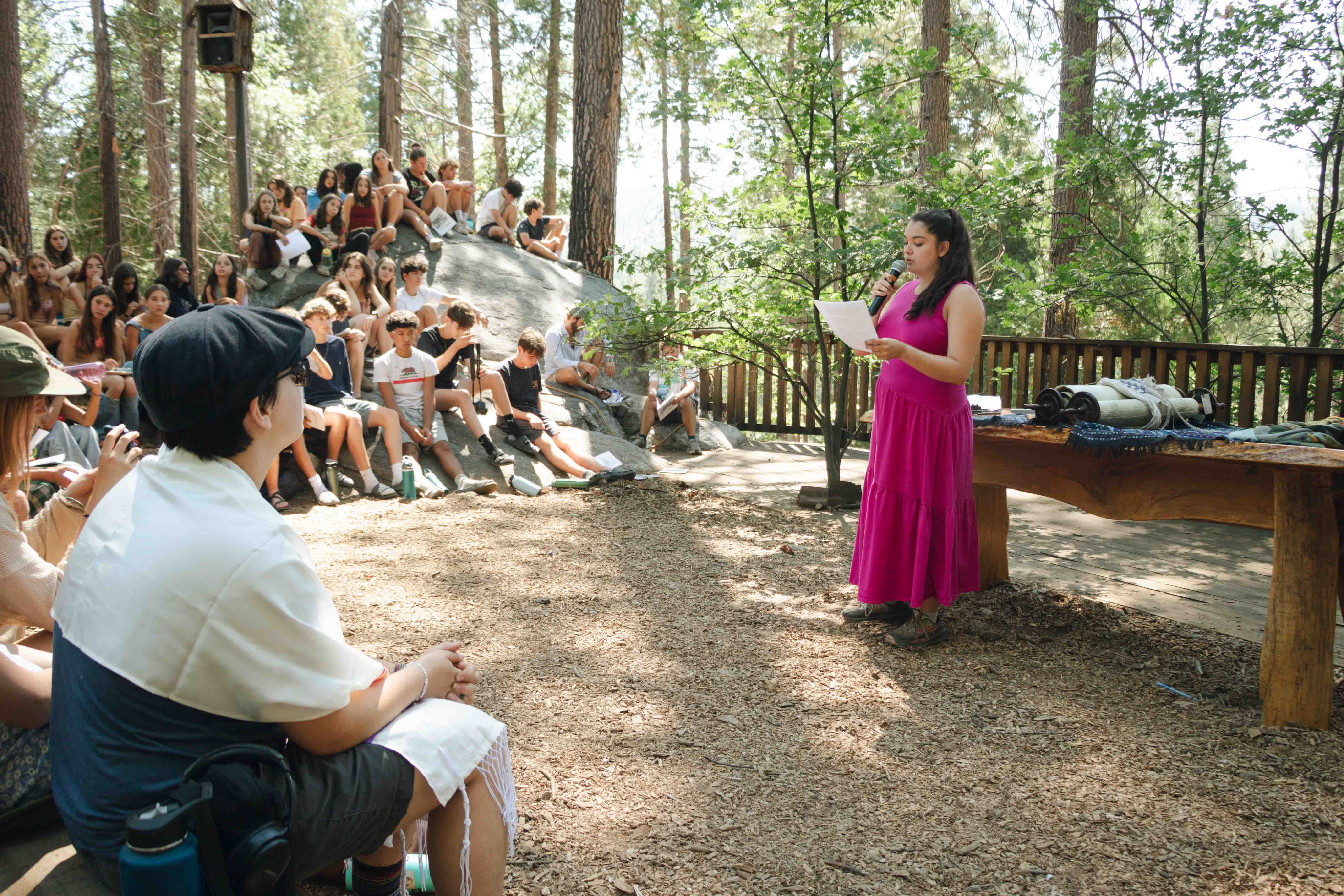 Saturday morning brought one of the most beautiful and peaceful moments of the session: Torah services at Makom Shalom, our outdoor sanctuary nestled in the forest. The tall trees and dappled light provided the perfect backdrop for spiritual connection and reflection.