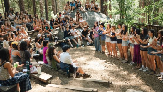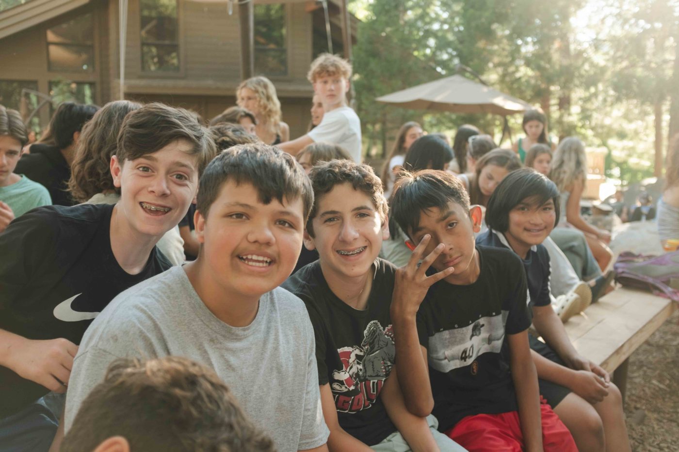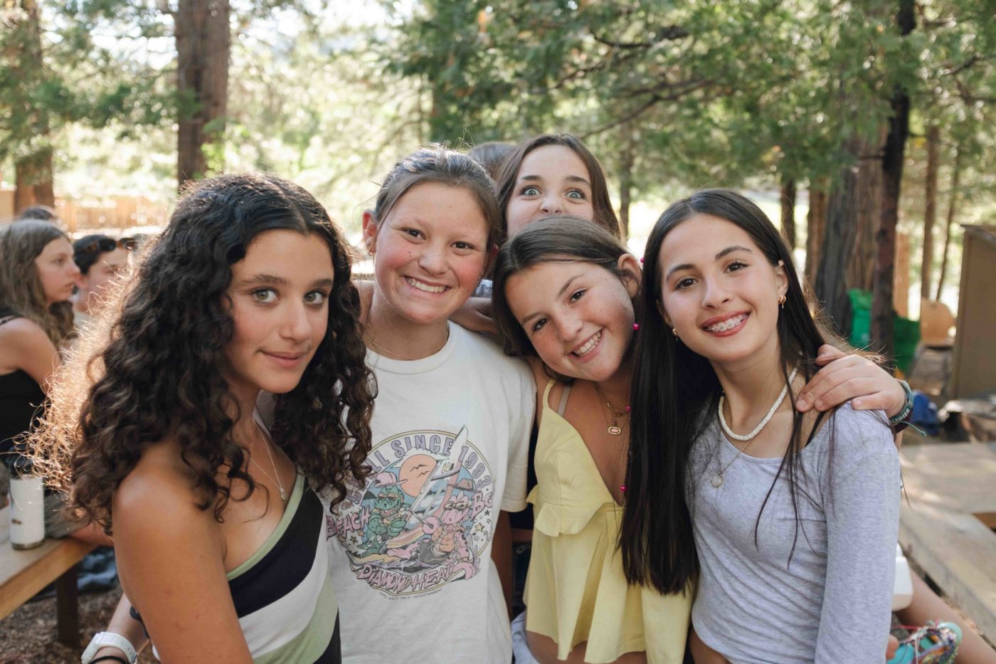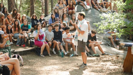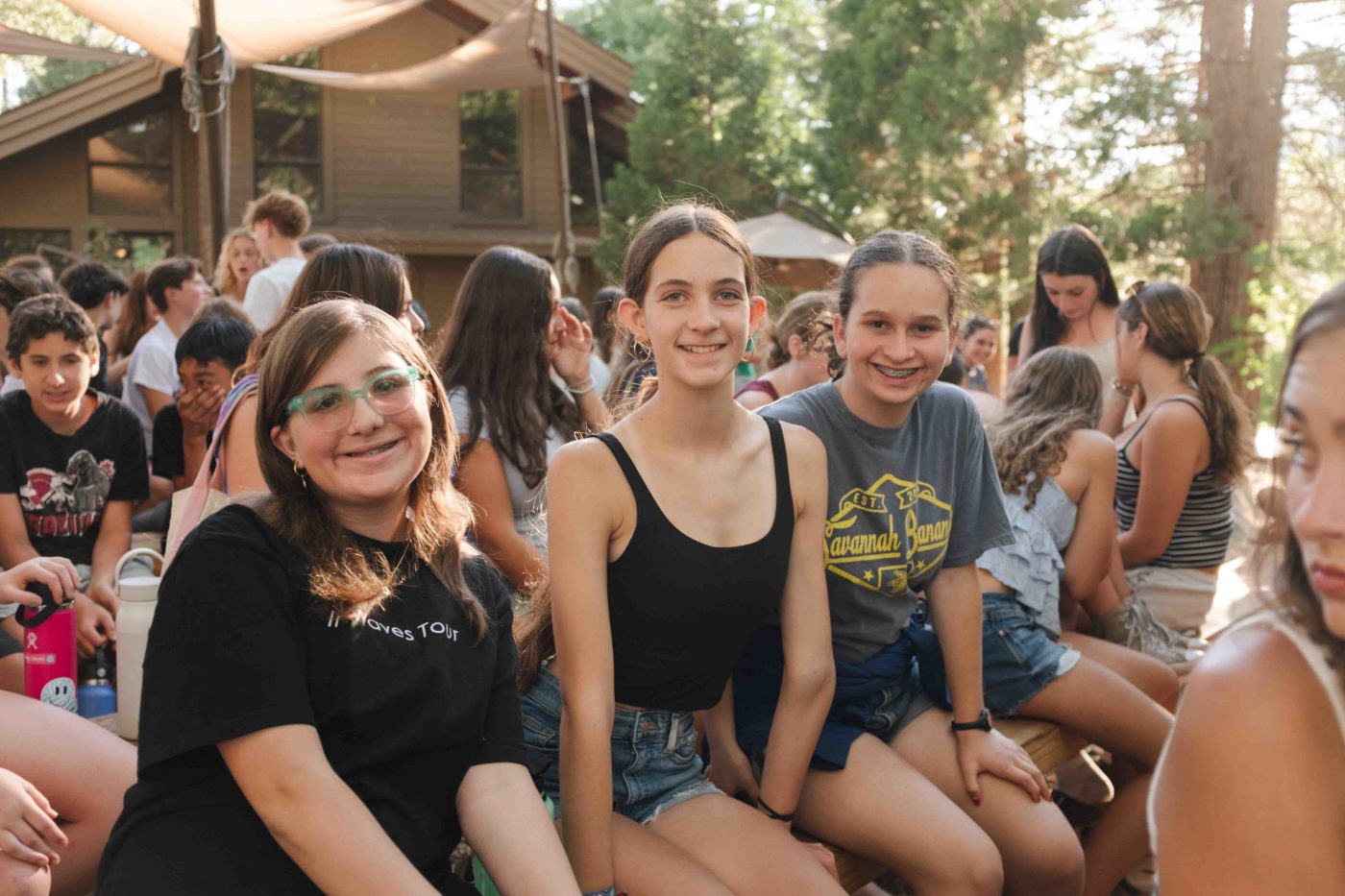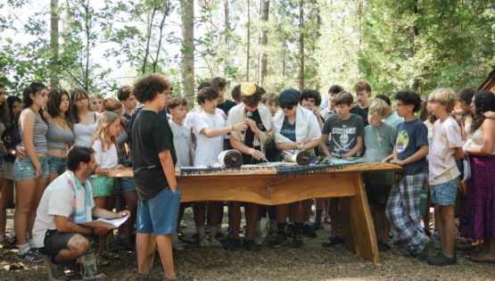 As the sun dipped behind the mountains Friday evening, the rest of Camp, including our TLI teens, embraced the serenity of Shabbat. Campers strolled slowly through the woods to the sounds of guitar and song for our Shabbat Stroll, followed by a delicious Shabbat dinner and our beloved Shabobbler (that’s Shabbat cobbler, of course!). Outside the Dining Hall, camp was alive with an ethereal freilach — a longer song session featuring classic Israeli folk dancing tunes, like Miriam’s Song where campers circle up to dance and laugh together. On this night, a band of staff musicians accompanied our song leaders, adding to the electric energy!