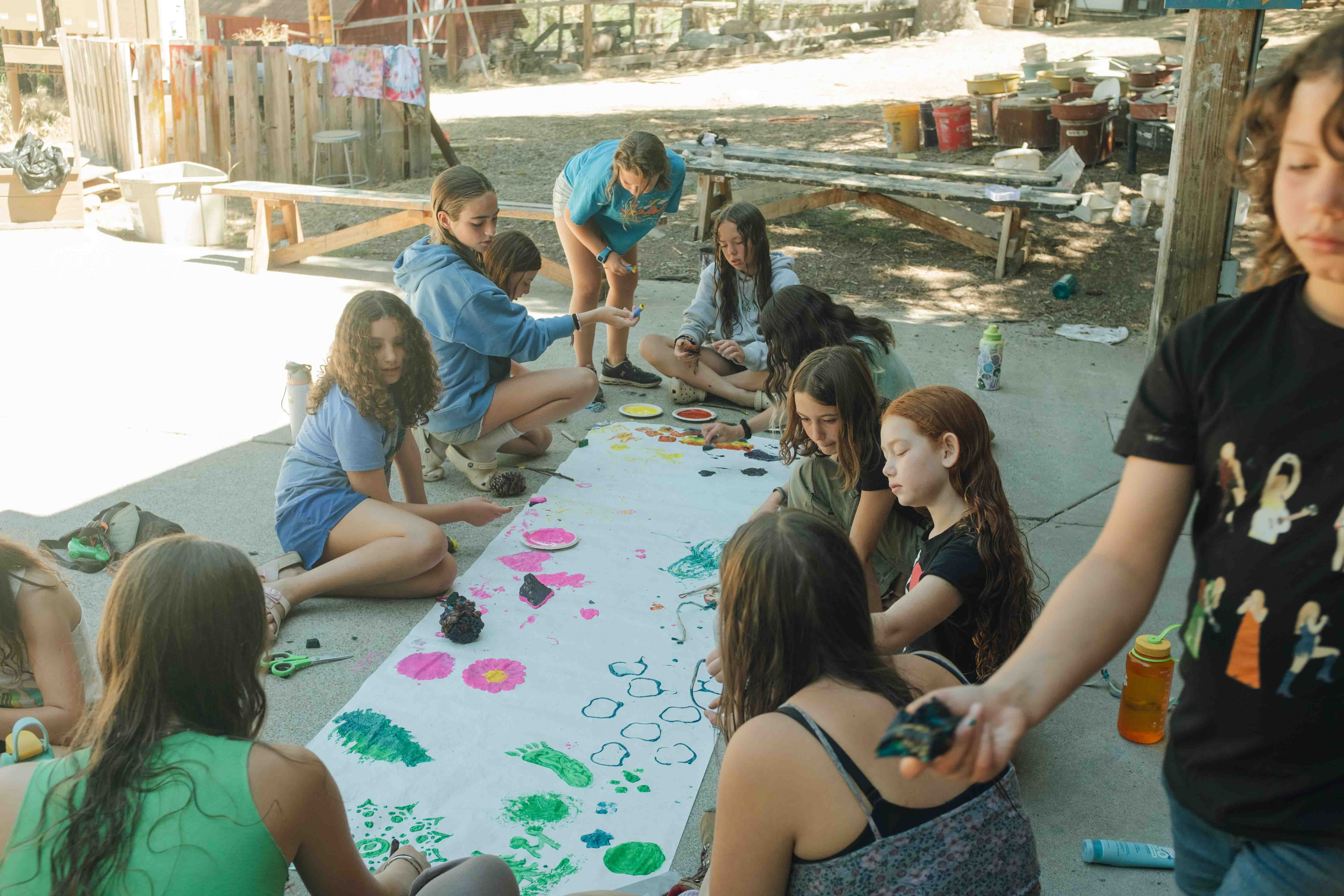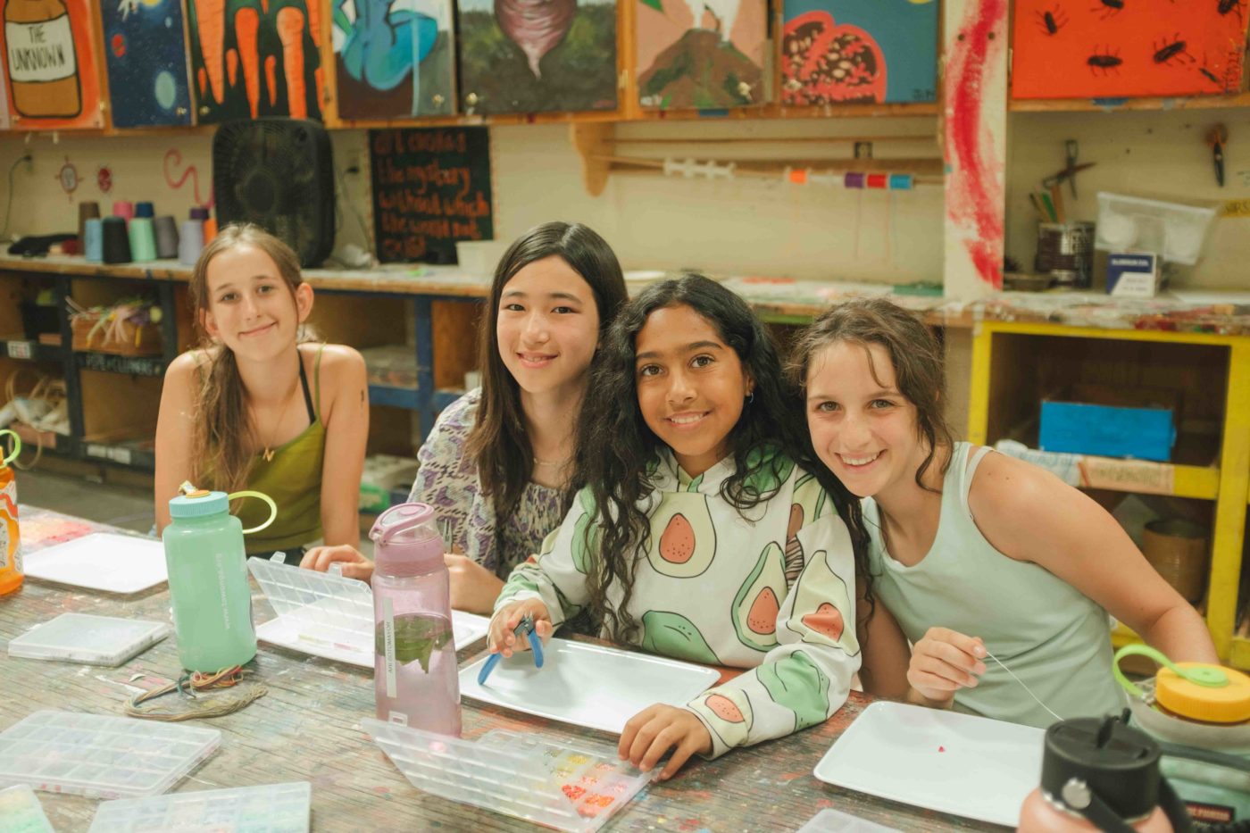 Later in the day, campers rotated through a special Shabbat Program — a beloved mix of low-key activities and opportunities to explore Jewish identity through games, discussion, and songs led by our Jewish Programming team. As the sun set, everyone gathered again for a rousing talent show, where campers showed off everything from silly skits to serious skills. Sunday kept the good vibes rolling with an all-Camp creative morning of skit-making and playful performances in bunk groups.