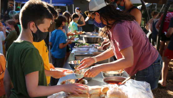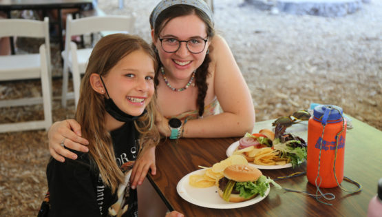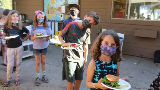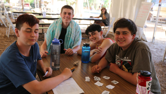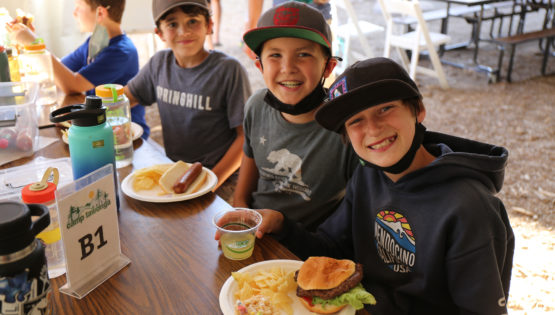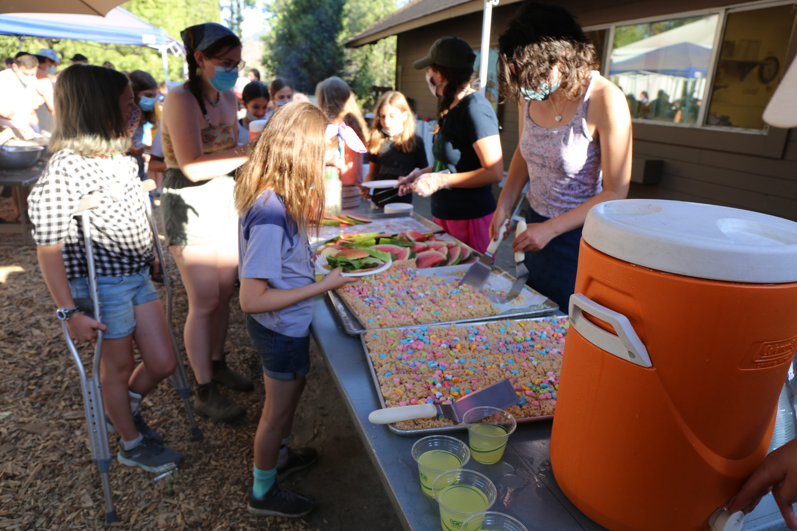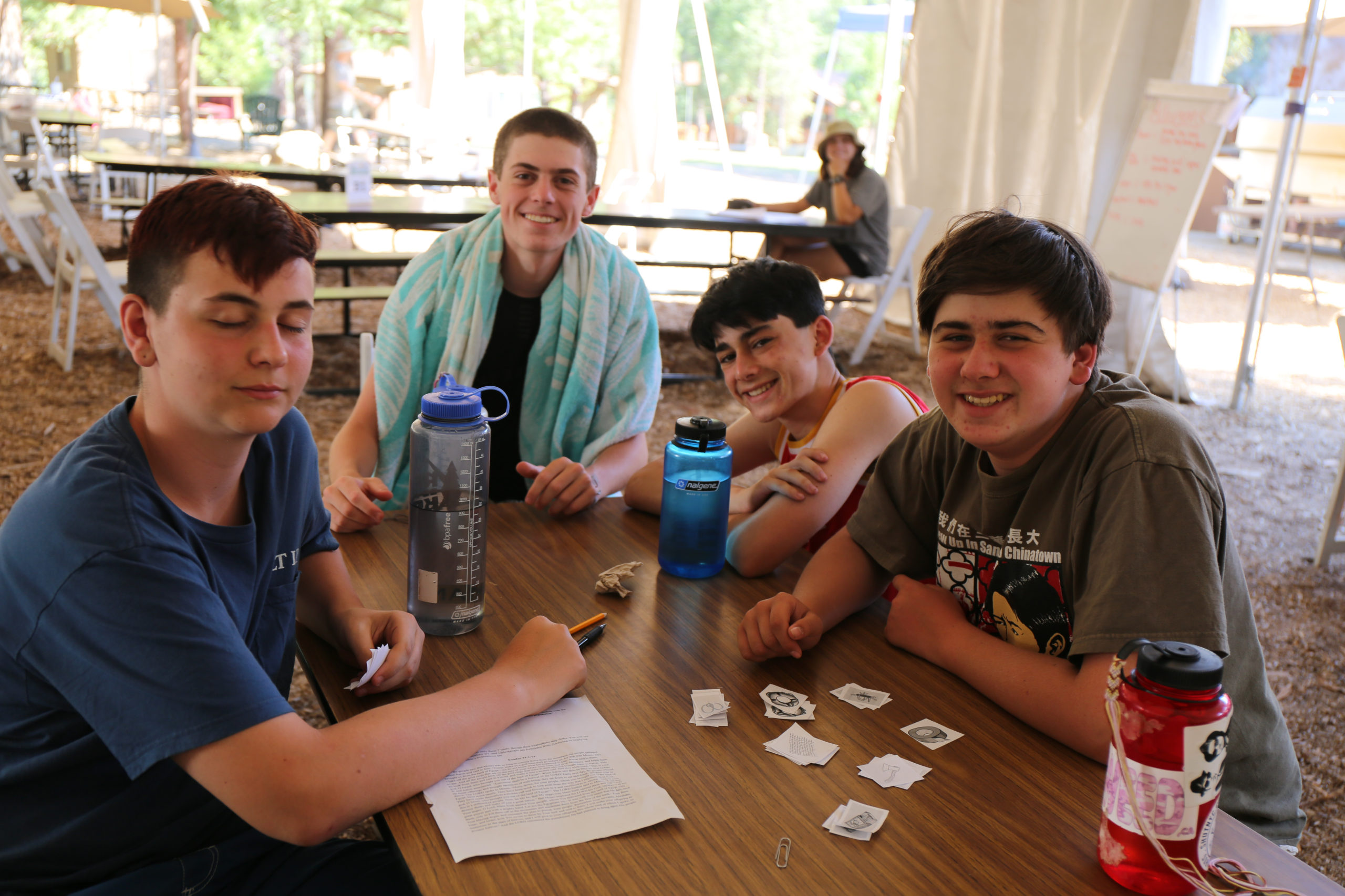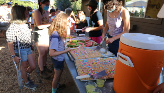 This morning, in honor of Shabbat, all of Camp had the luxury of a sleep-in breakfast with bagels, cream cheese, fruit and assorted special Shabbat cereals. Soon after, campers gathered for a Torah service in our majestic outdoor sanctuary, Makom Shalom, which means Place of Peace. The service is a mix of Hebrew and English prayers that bring the fourth rung of Tawonga’s Mission to life: spirituality and positive Jewish identity.