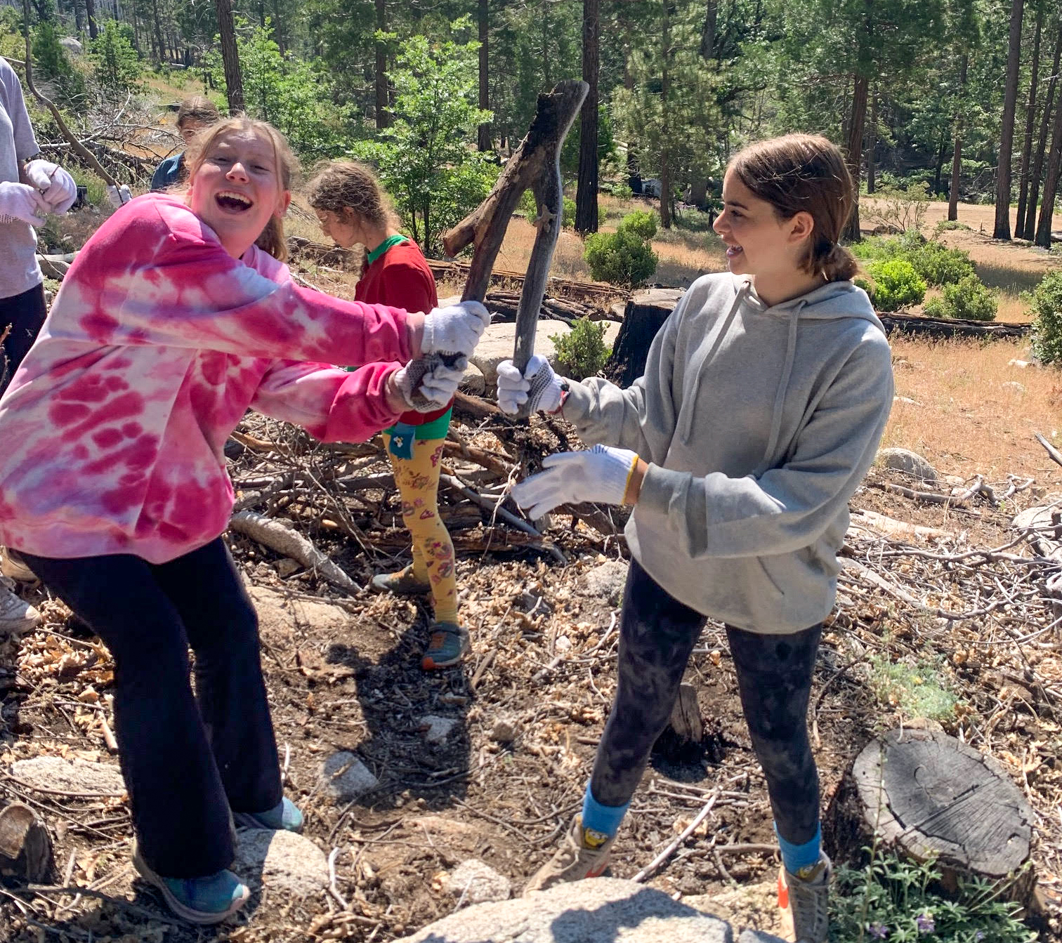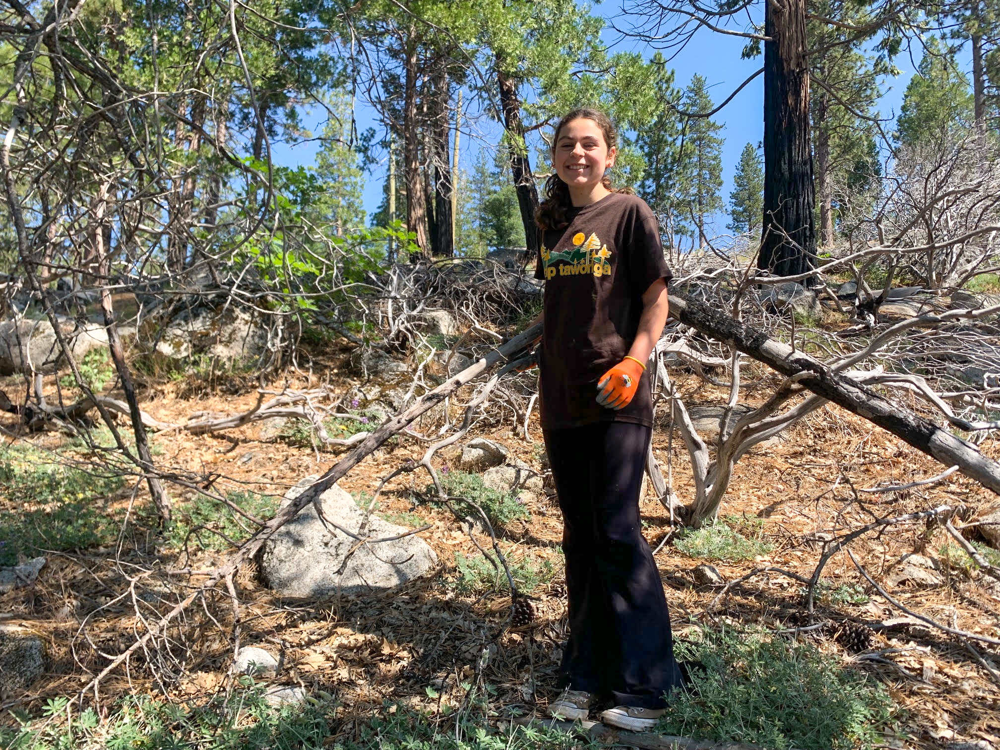 Campers all summer, including during Session 2, are giving back to Camp and connecting with the environment in meaningful ways. The Hebrew expression L’dor vador (from generation to generation) is a key Tawonga theme, especially when paired with the core mission value of Tikkun Olam (repairing our world). At Tawonga, our goal is to care for this land as those who are indigenous to it – the Miwok – have out of respect for the land and all its past, current and future inhabitants. SNAP Fellow and Tawonga Forestry Supervisor, Jack Rohwer, is helping make this goal a reality.