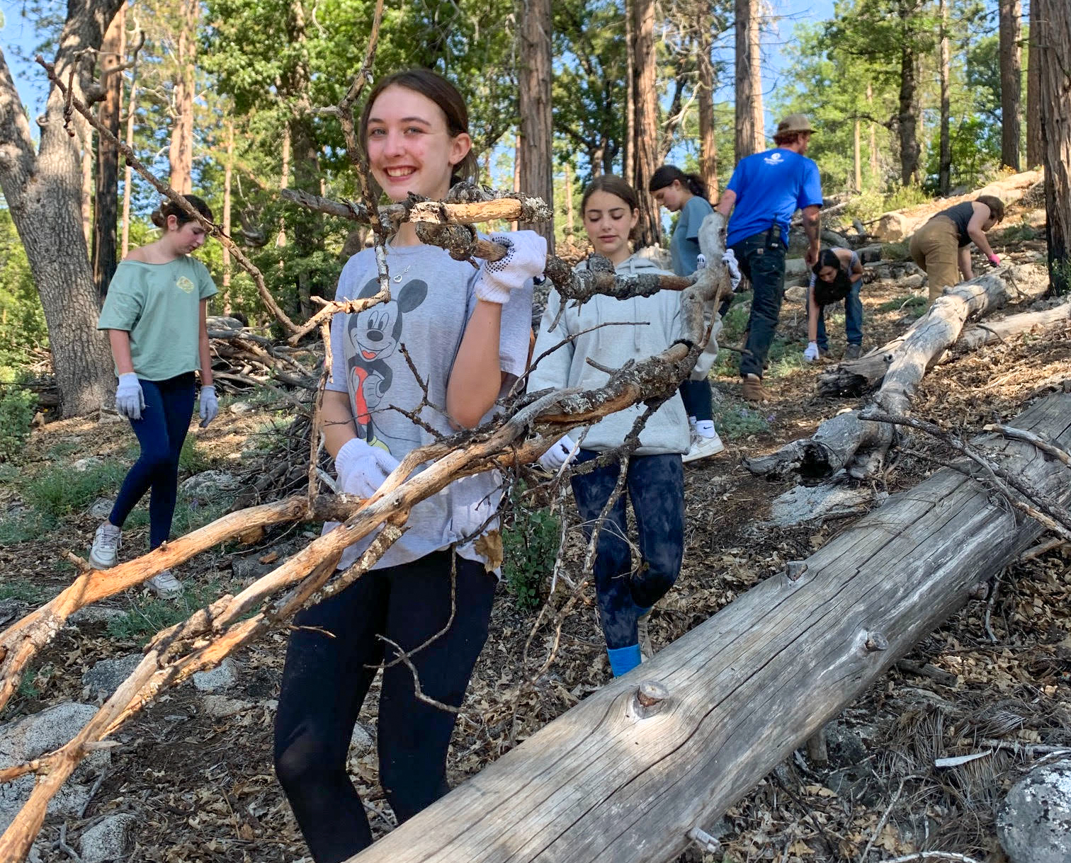 When kids see scorch marks that reach 20 feet high on trees and realize that the Challenge Course where they are doing stewardship work is relatively new since it burned down in the Rim Fire, they have a new appreciation to fuel their efforts in clearing the land.