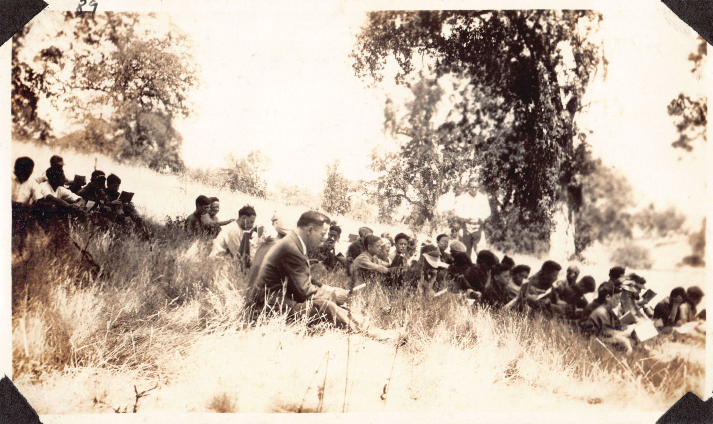 A number of photographs document Shabbat services in the woods, showing that campers in the 1920s gathered and prayed outdoors just as contemporary Tawongans do at our Tuolumne property.