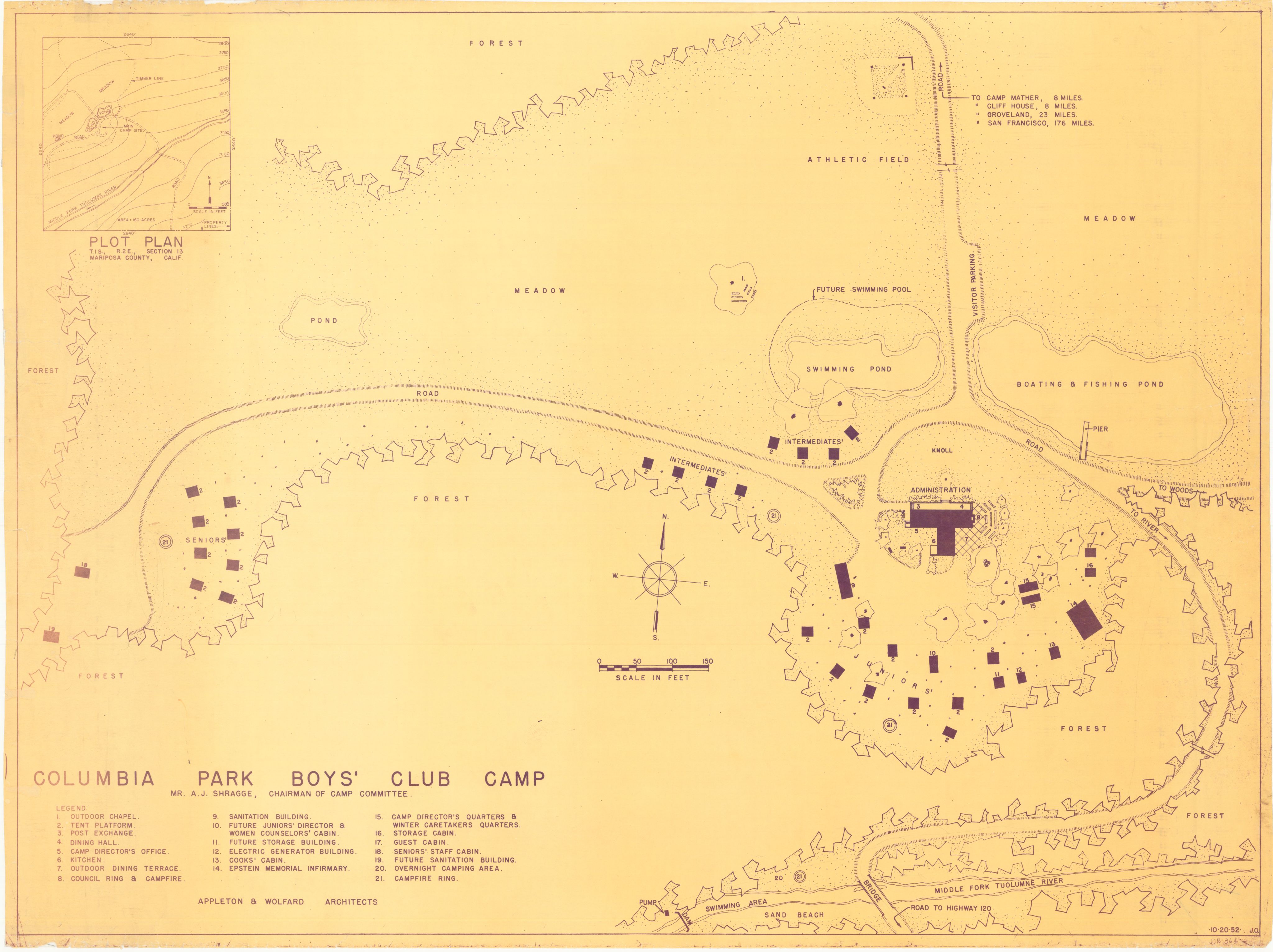 The new site came with a dining hall, tent cabins, a few simple wood cabins, a caretaker’s home, an infirmary, and a “regulation swimming pool.”