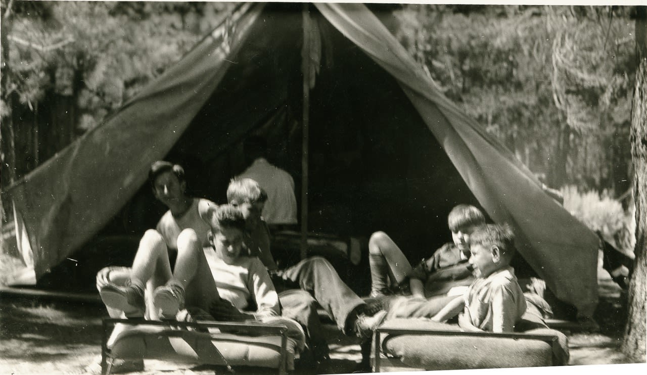 Harold Zellerbach (right) visiting camp in Cisco, Calif., in 1929. Zellerbach was the grandson of Anthony Zellerbach, a Bavarian immigrant who came to San Francisco during the gold rush and eventually began a San Francisco paper company, later known as the Crown Zellerbach Corporation. Many prominent buildings and institutions, including UC Berkeley's Zellerbach Auditorium, honor the family's philanthropic legacy.