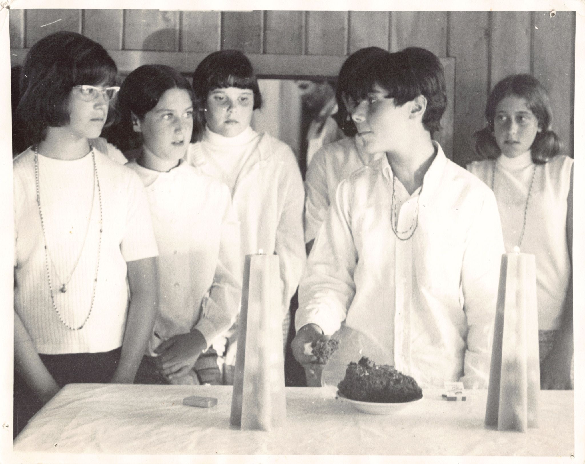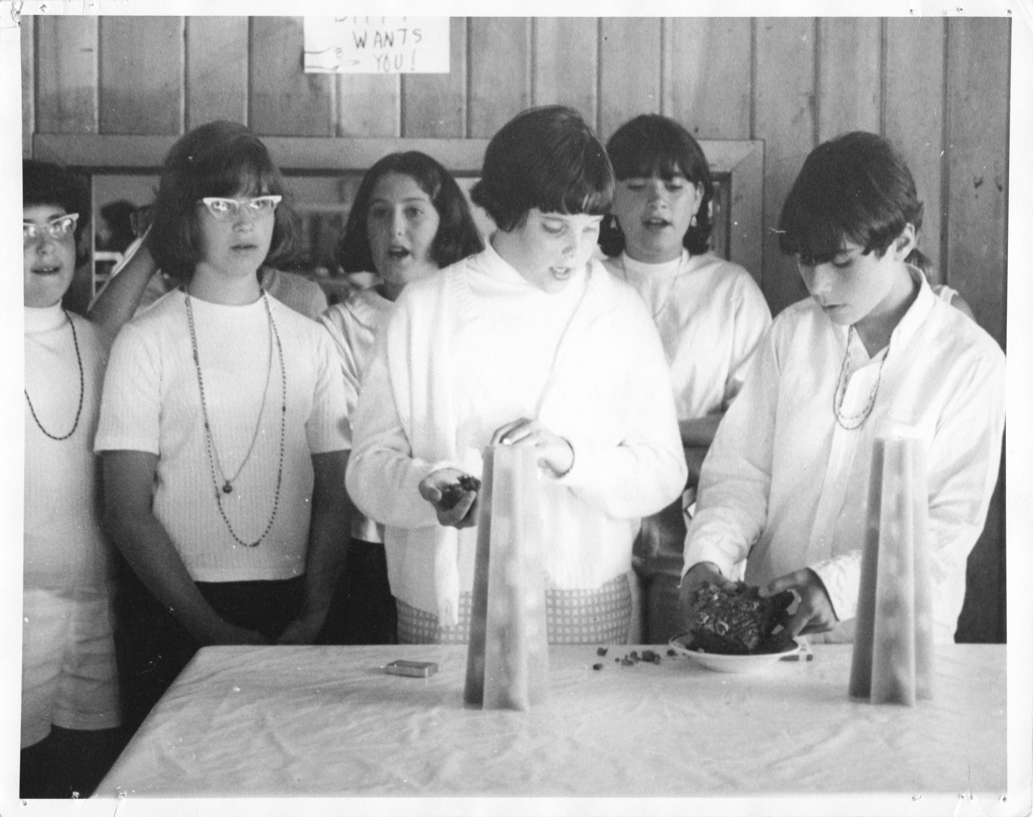 This photo, likely from 1966 or 1967, shows an early song session in the Dining Hall.