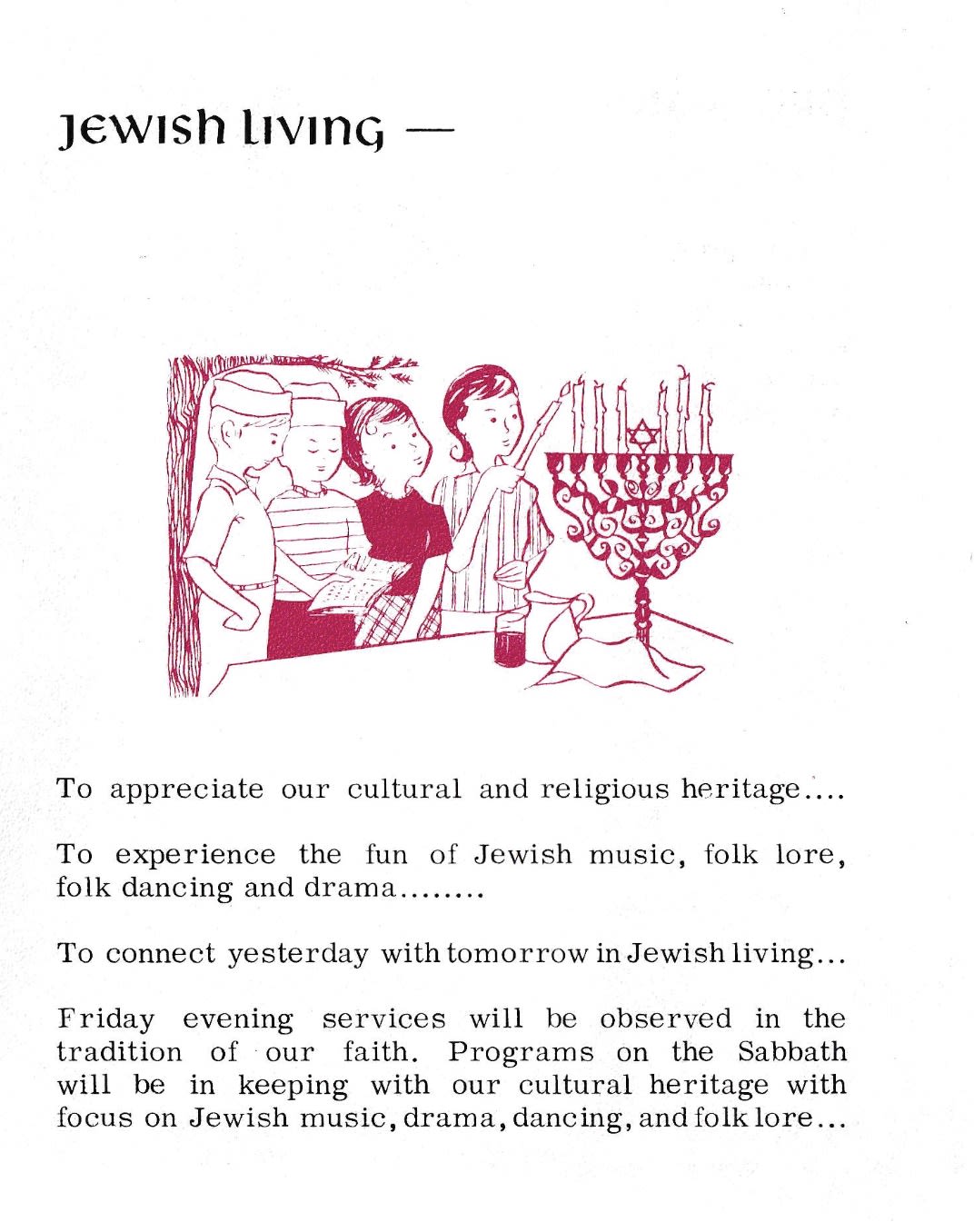 One page of the brochure highlights “Jewish Living” as part of the program’s goals.