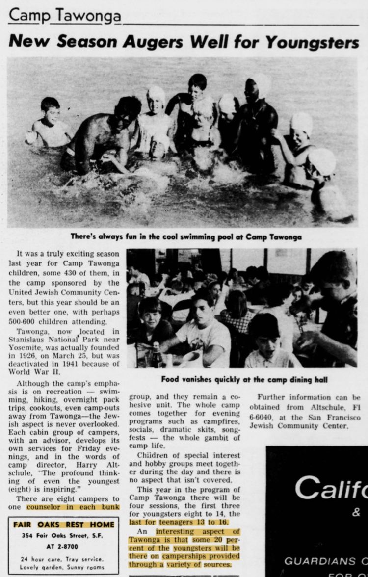 A 1966 article in the Jewish Community Bulletin noted that 20 percent of campers attended on camperships, financial assistance provided through community support. Six decades later, that commitment endures.