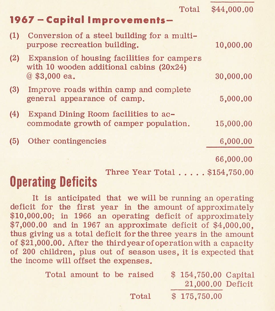 The three-year capital plan totaled $154,750 — the equivalent of more than $1.5 million today. The board projected operating deficits for each of the first three years and confirmed that a group of community leaders had personally guaranteed the mortgage.