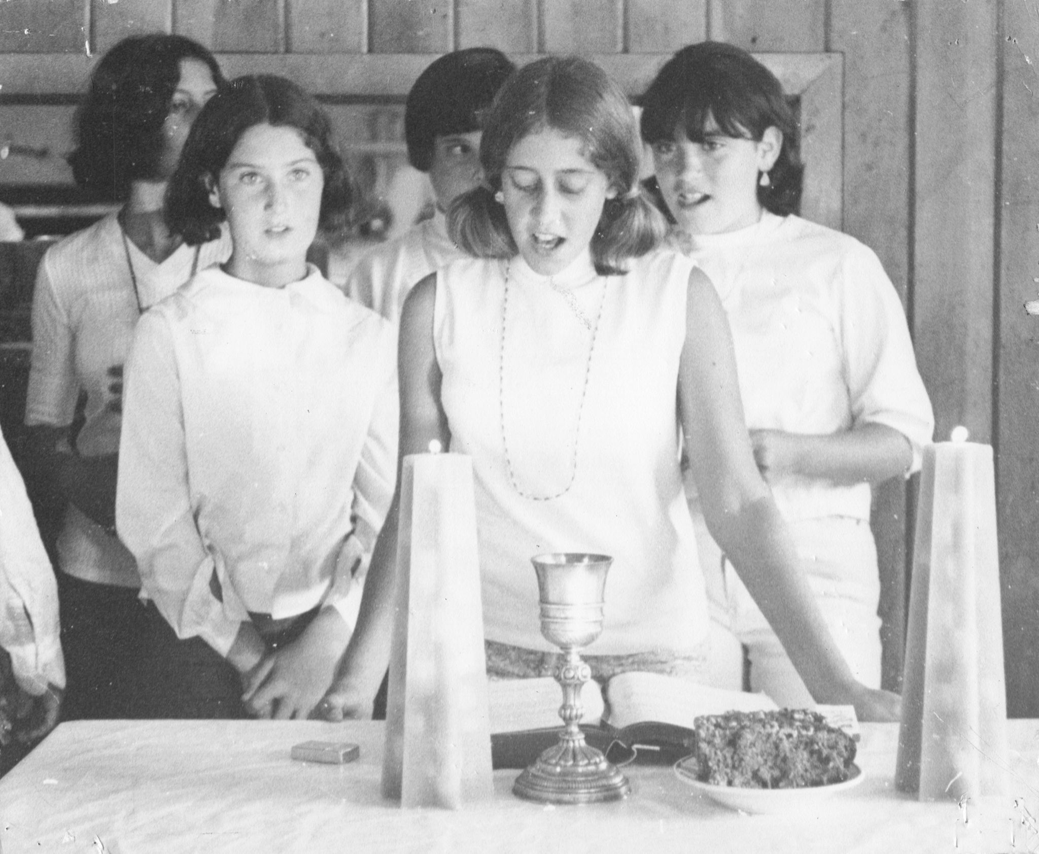 A few photographs survive of an Oneg Shabbat service in the Dining Hall.
