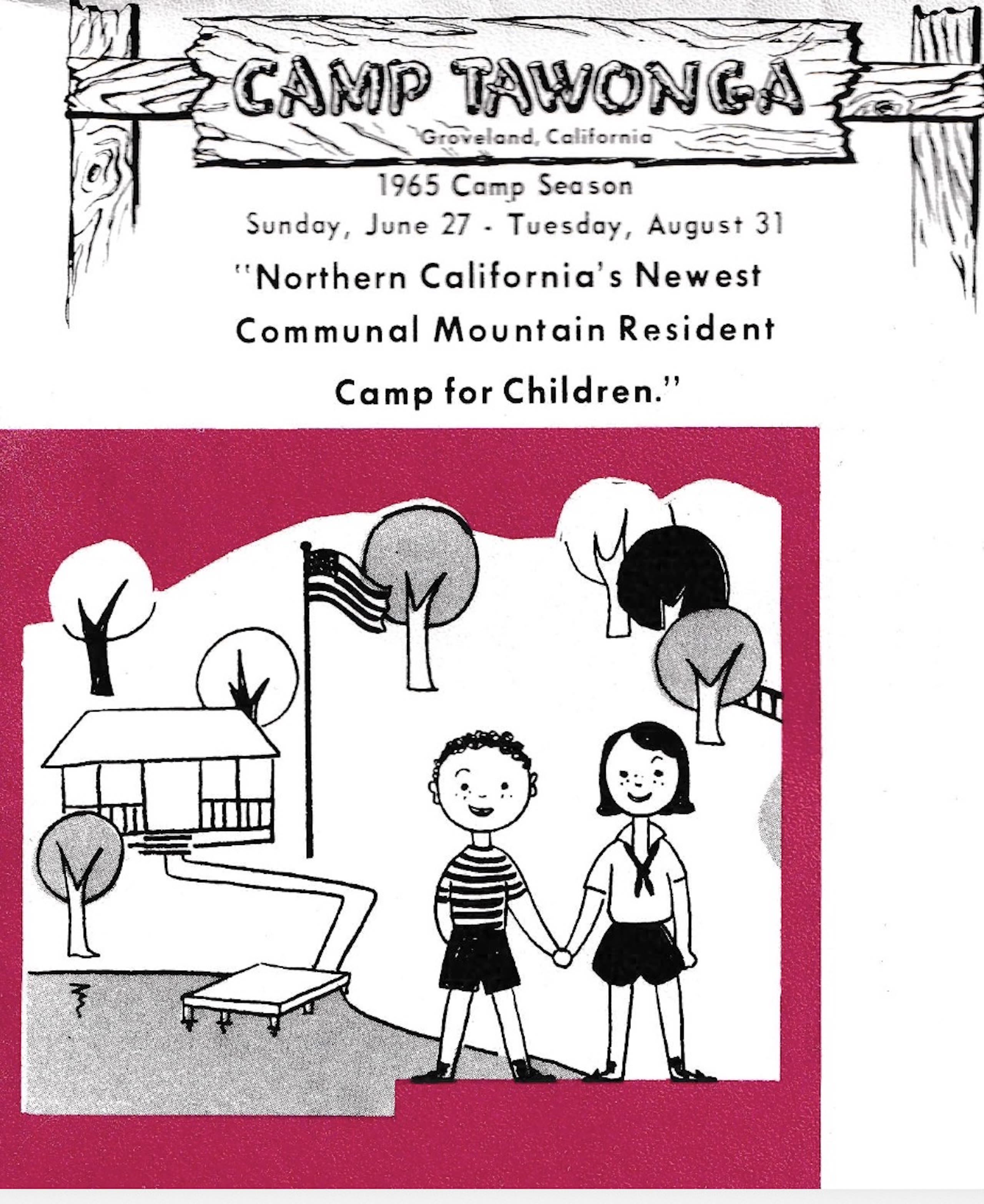 The camp that reopened in 1965 announced itself to the Bay Area Jewish community through a brochure that now feels like an artifact from another era. Its illustrations — cheerful line drawings characteristic of the postwar decades — suggested a wholesome, all-American summer experience.