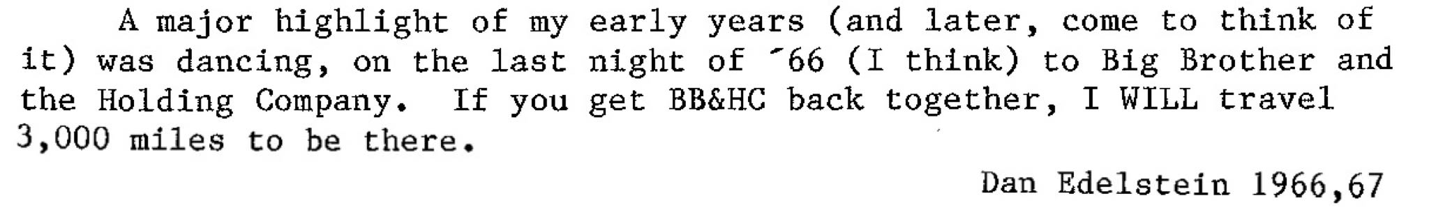 Joplin and her band were guests of Camp Director Marvin Bienstock, who had met the band’s manager, Peter Albin, while working at the Peninsula Jewish Community Center. Bienstock later recalled that he hoped bringing a popular band to camp might help boost teenage attendance.