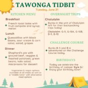 Thanks for tuning in, and check out the “Tawonga Tidbit” below for some more fun Camp facts from the day.