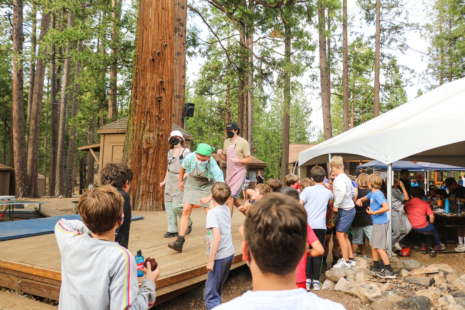 Later on after a delicious dinner of spaghetti and roasted veggies, campers took part in a time-honored Tawonga tradition, thanking the hard-working staff behind the scenes with shouts of, “We want the Kitchen Staff” echoing through the Dining Pavilion, along with cheers and (COVID-safe) elbow bumps.
