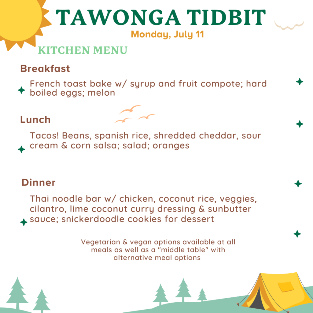 For a behind the scenes peek into what goes into creating a camp meal, check out this blog post by a kitchen staffer!