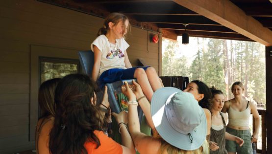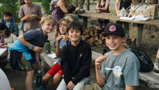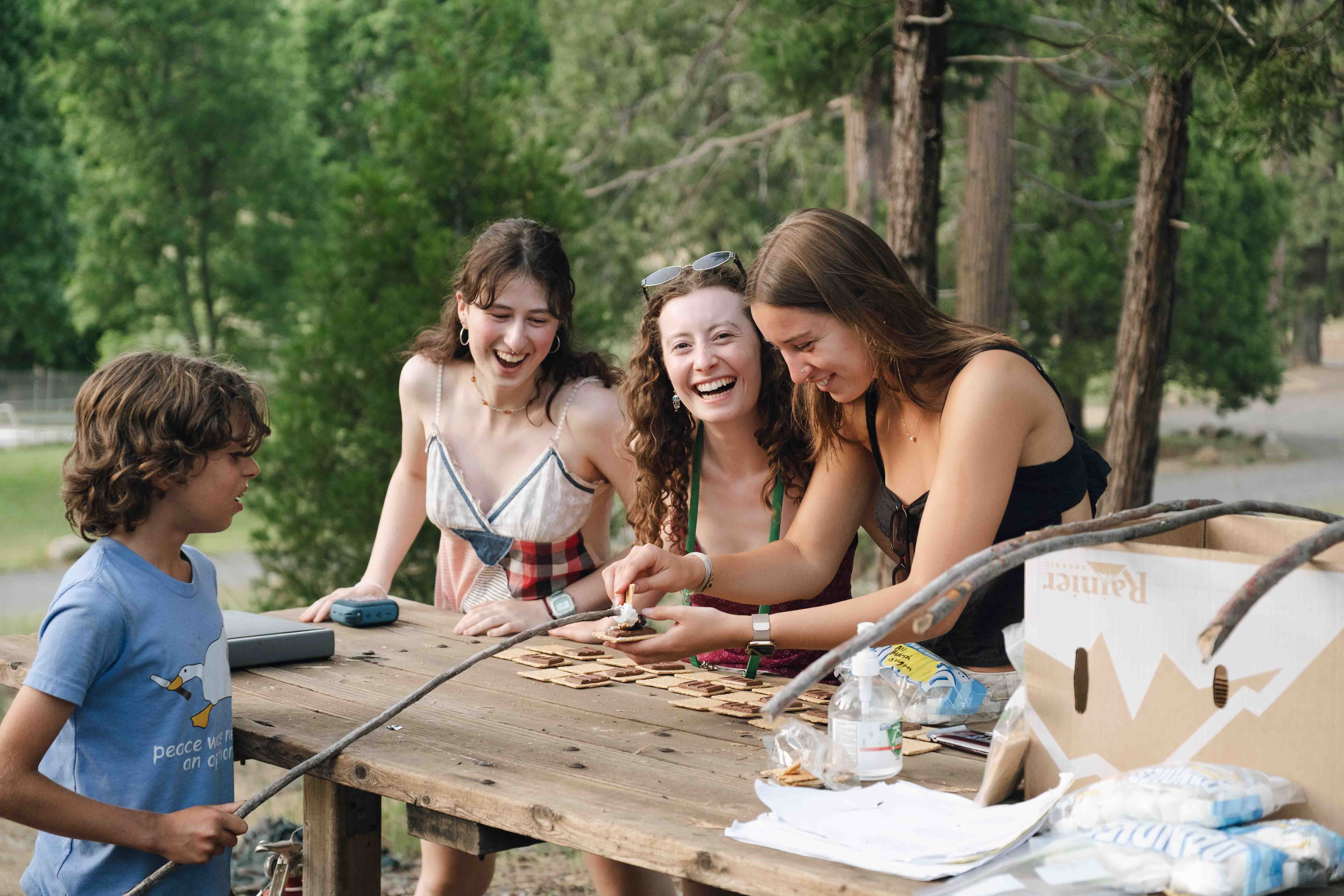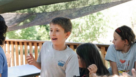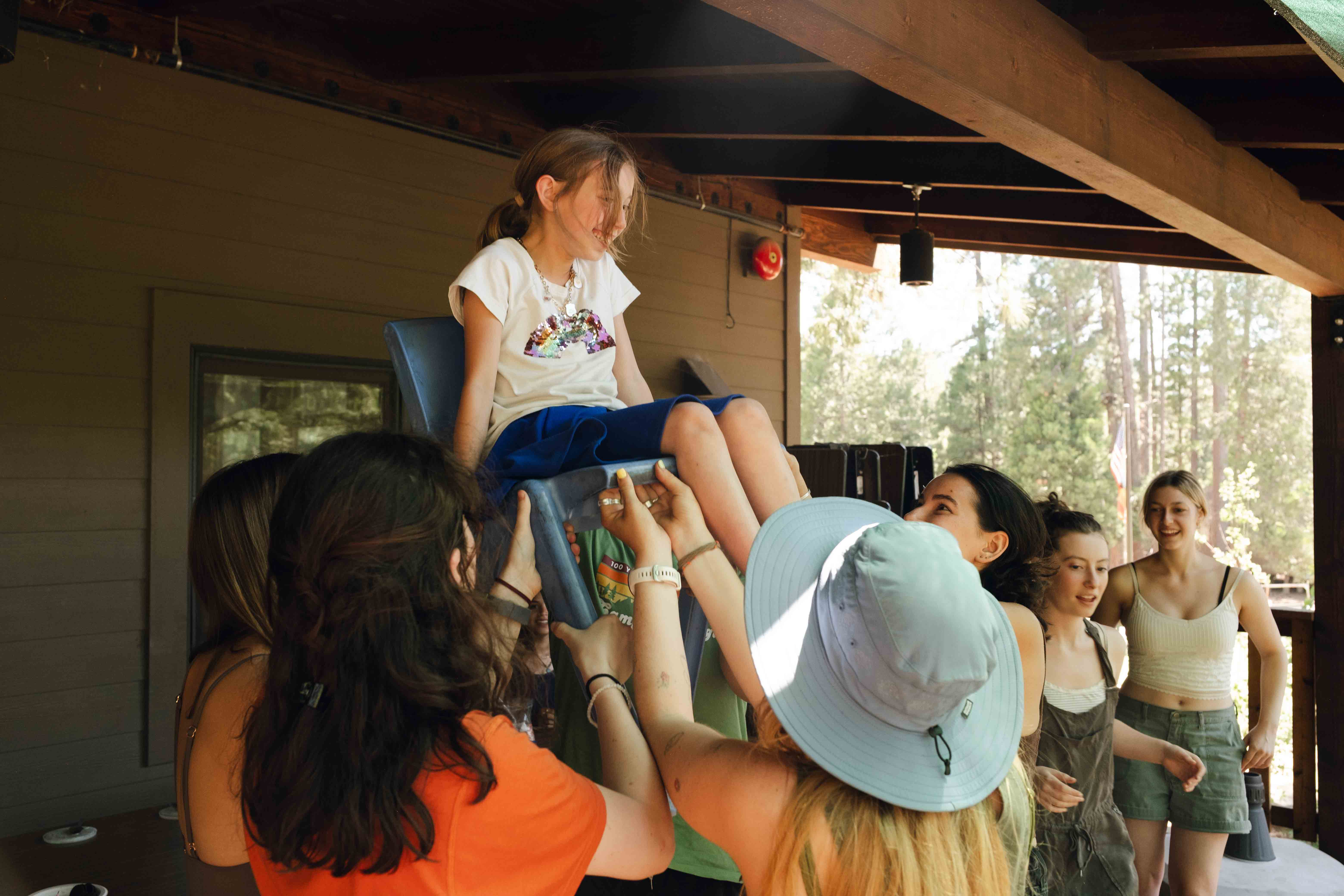 Campers spend about 90% of their time with their bunk group — traveling together to activities, eating meals side by side, and sleeping in the same cabin. The goal of Tawonga isn’t activity expertise; it’s about building a strong, cooperative community. Each day, bunkmates make decisions together by consensus, take on rotating responsibilities like setting tables and sweeping the dining hall, and learn what it means to be a thoughtful, inclusive group.