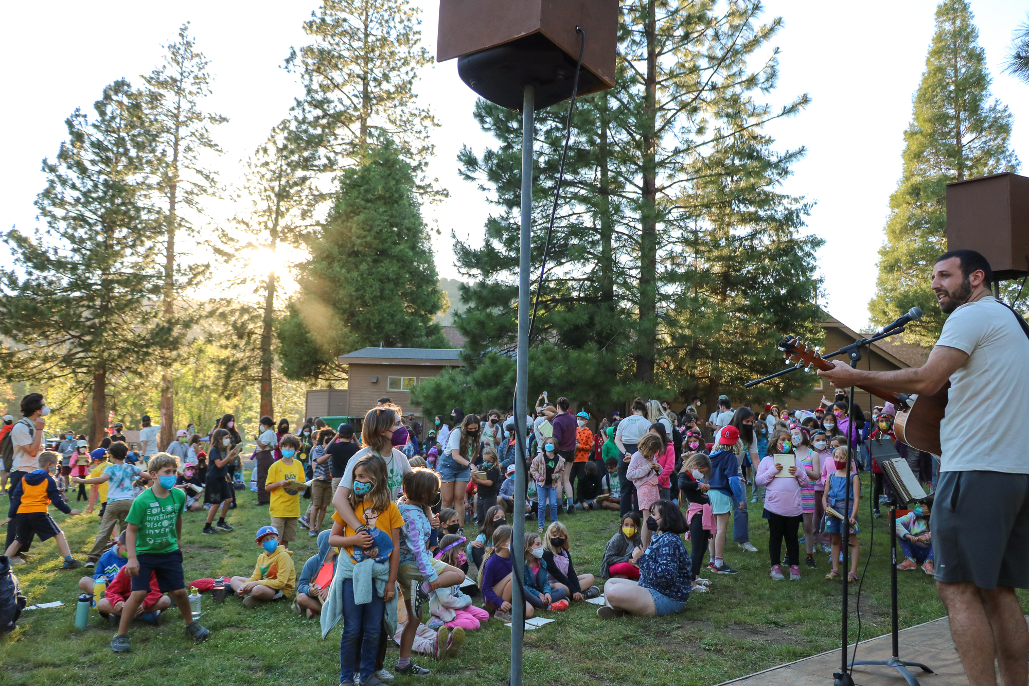 After a delicious dinner and some birthday shtick for several lucky campers (See “Tawonga Tidbit” below), our talented songleaders LJ, Jonah and Elan led everyone in a rousing song session. Of course, tradition is everything at summer camp, and they kicked it off with the iconic Tawonga take on the John Denver song “Country Roads” as kids joyfully danced and sang, many knowing every word.