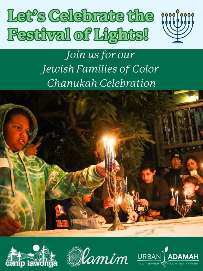 You and your family are invited to a Families of Color Chanukah Celebration on Saturday, December 20! We hope you’ll join us for this special affinity space gathering for Jewish families that include at least one person of color. We will build community, sing songs with the amazing Isaac Zones, get crafty with kids Chanukah activities – and of course, light candles!