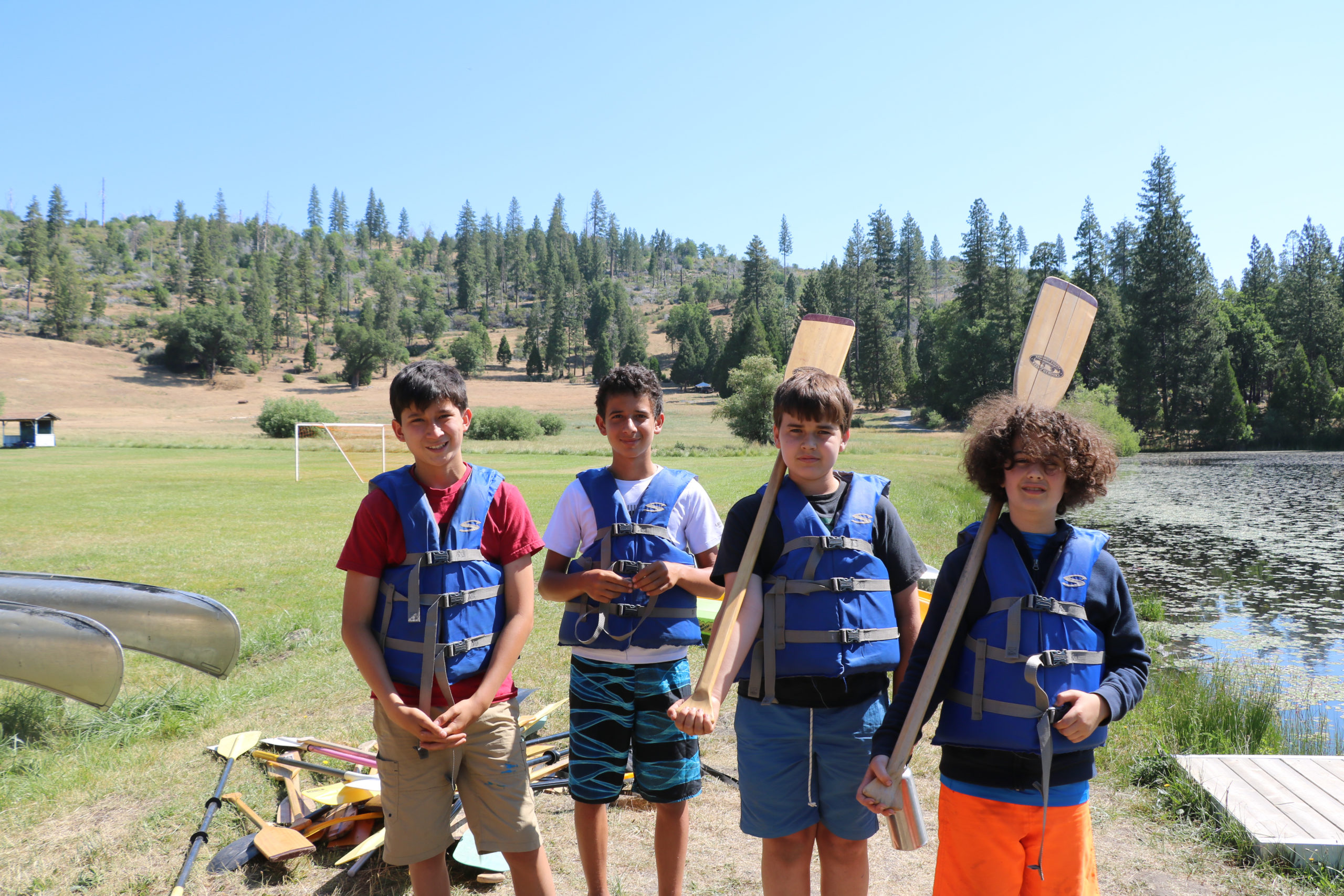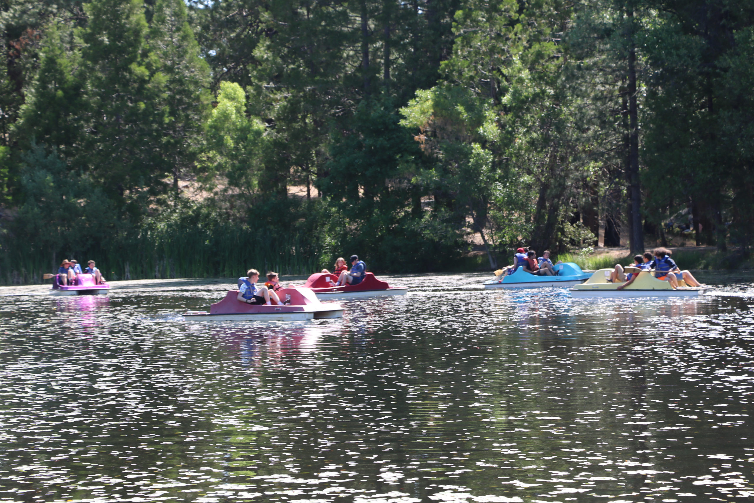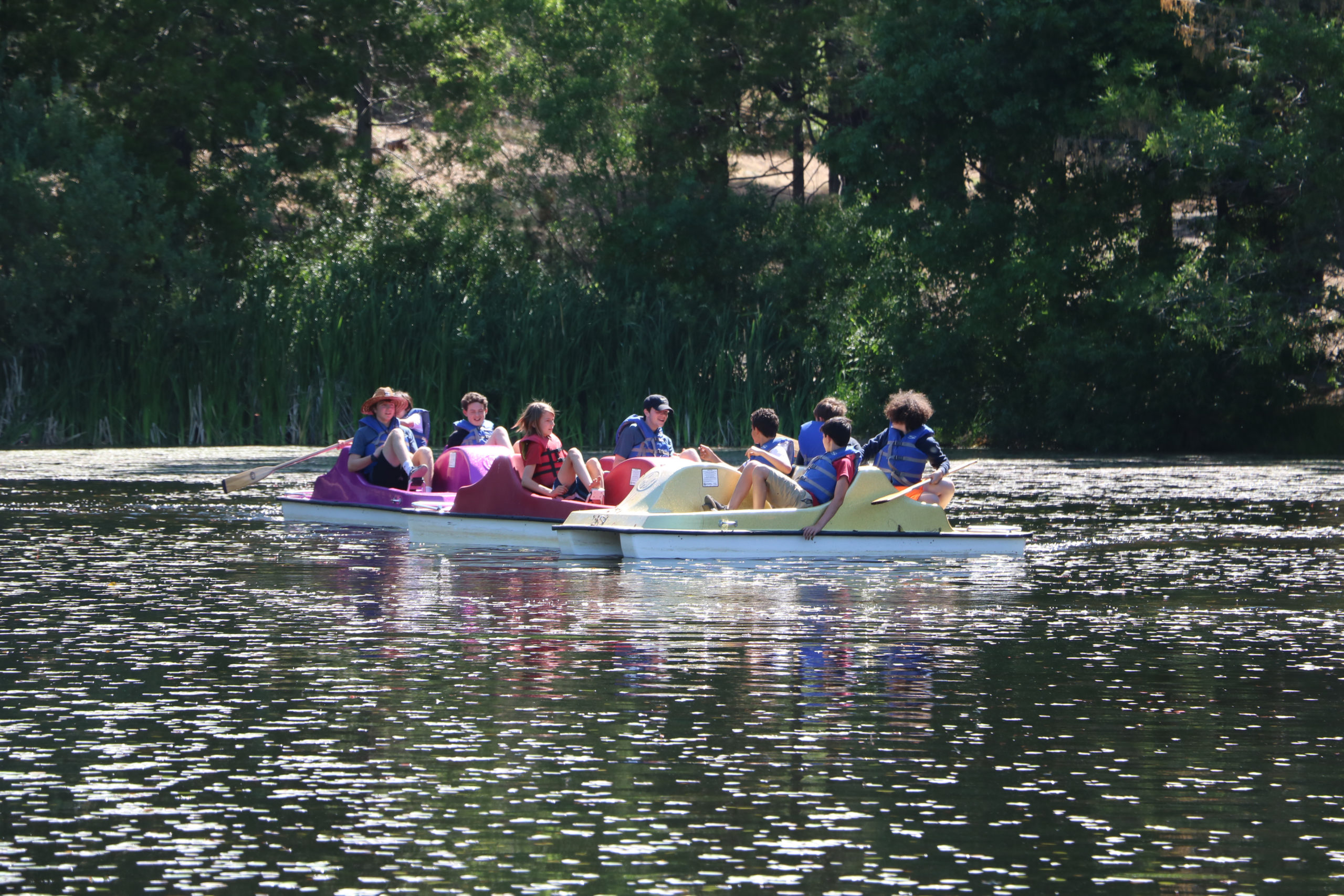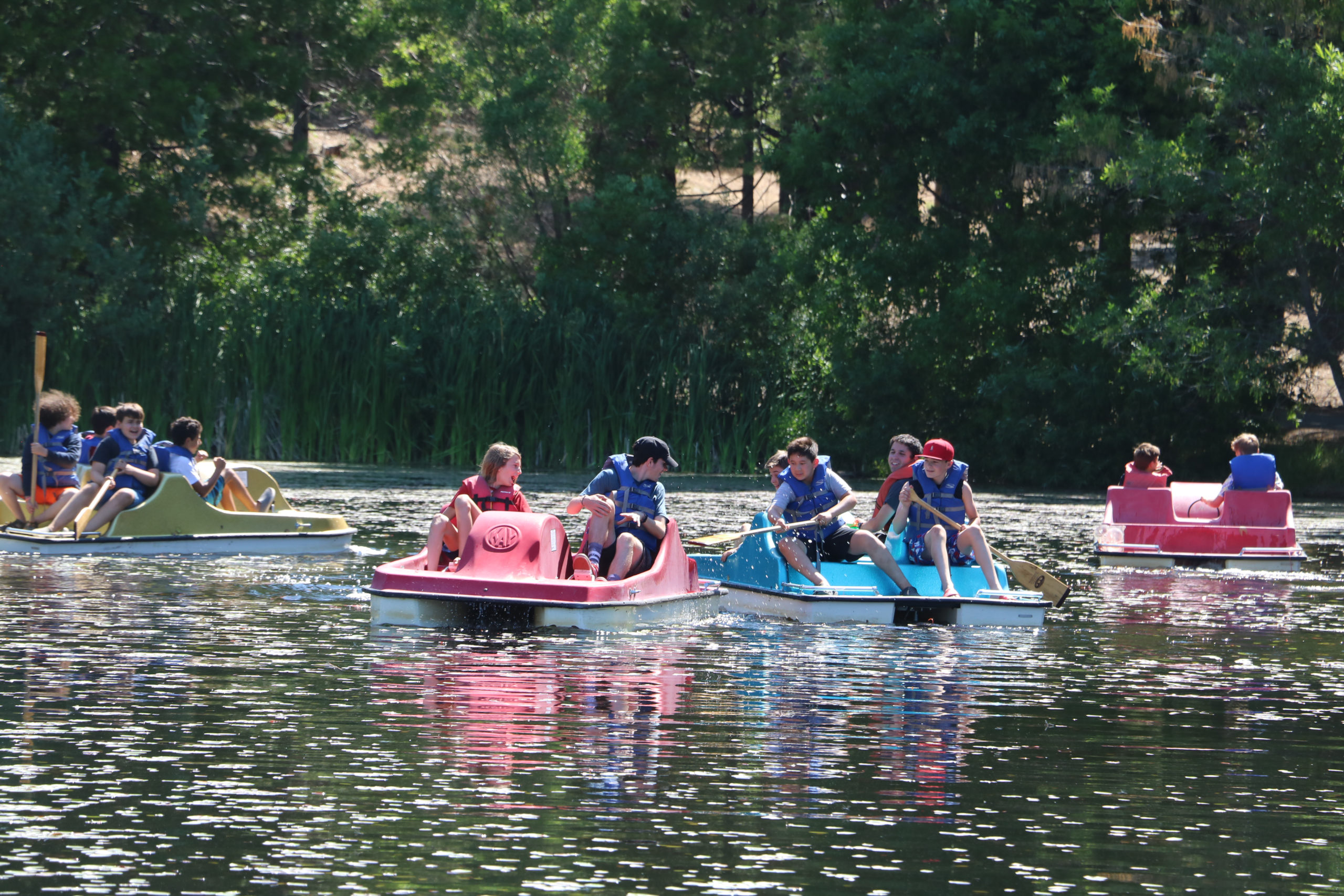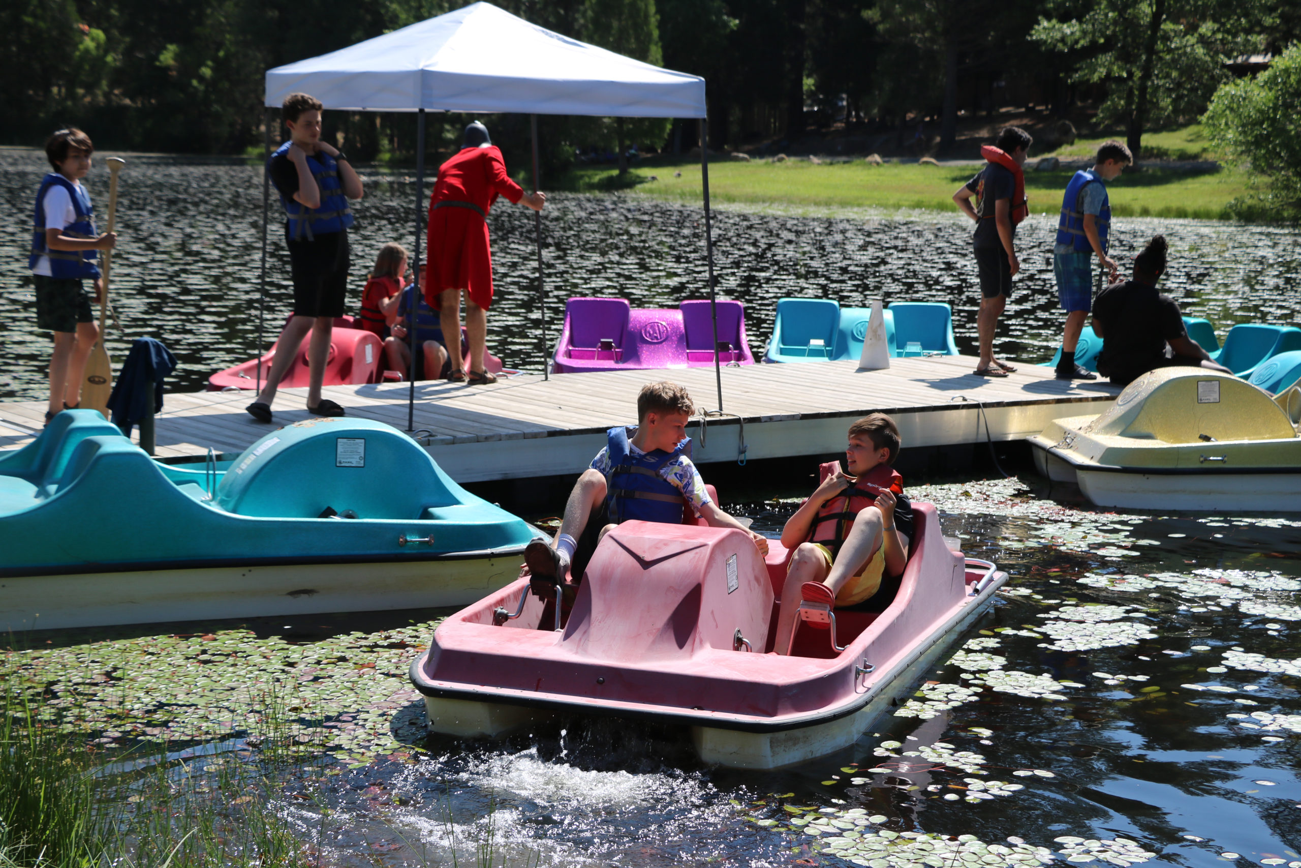 Campers were instructed to knock "tea" (pitchers of lake water) off each other's boats