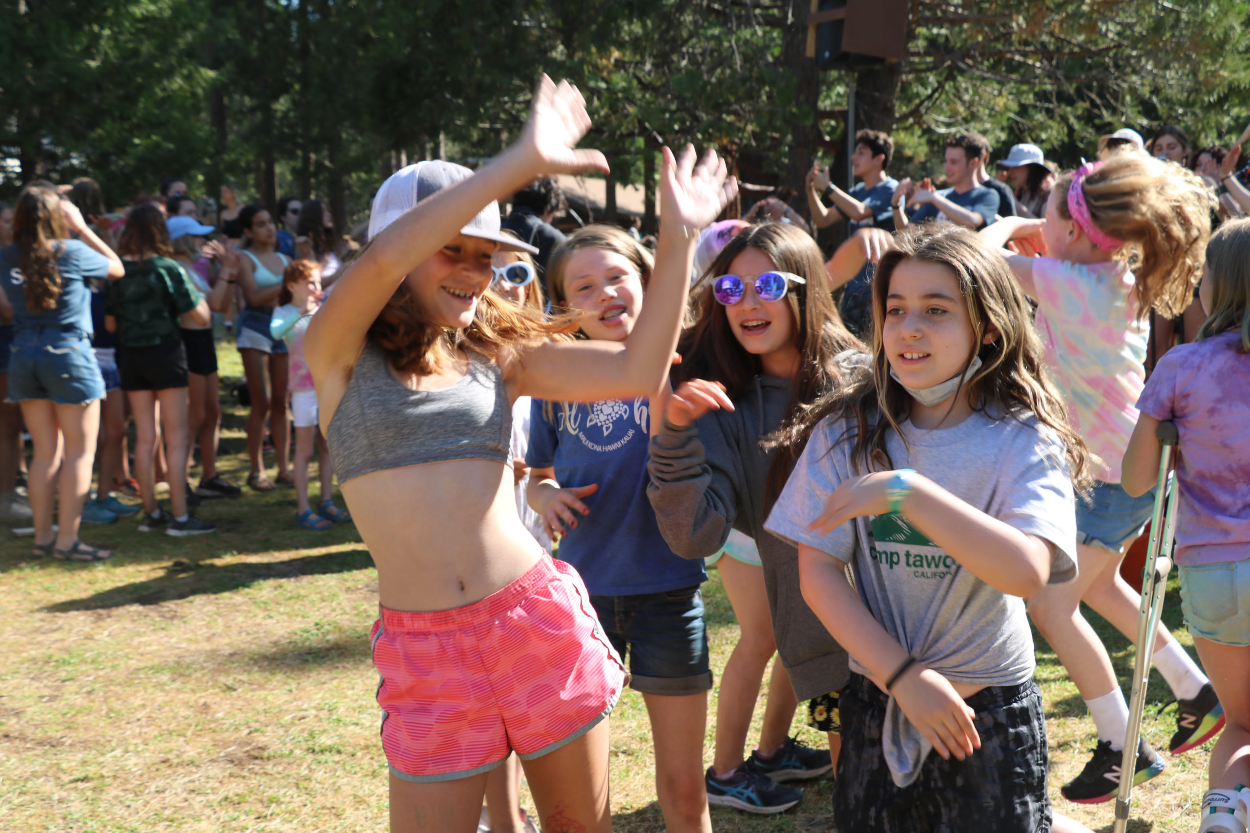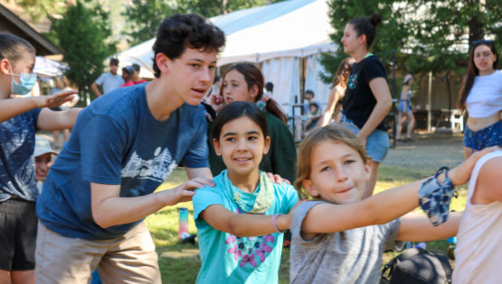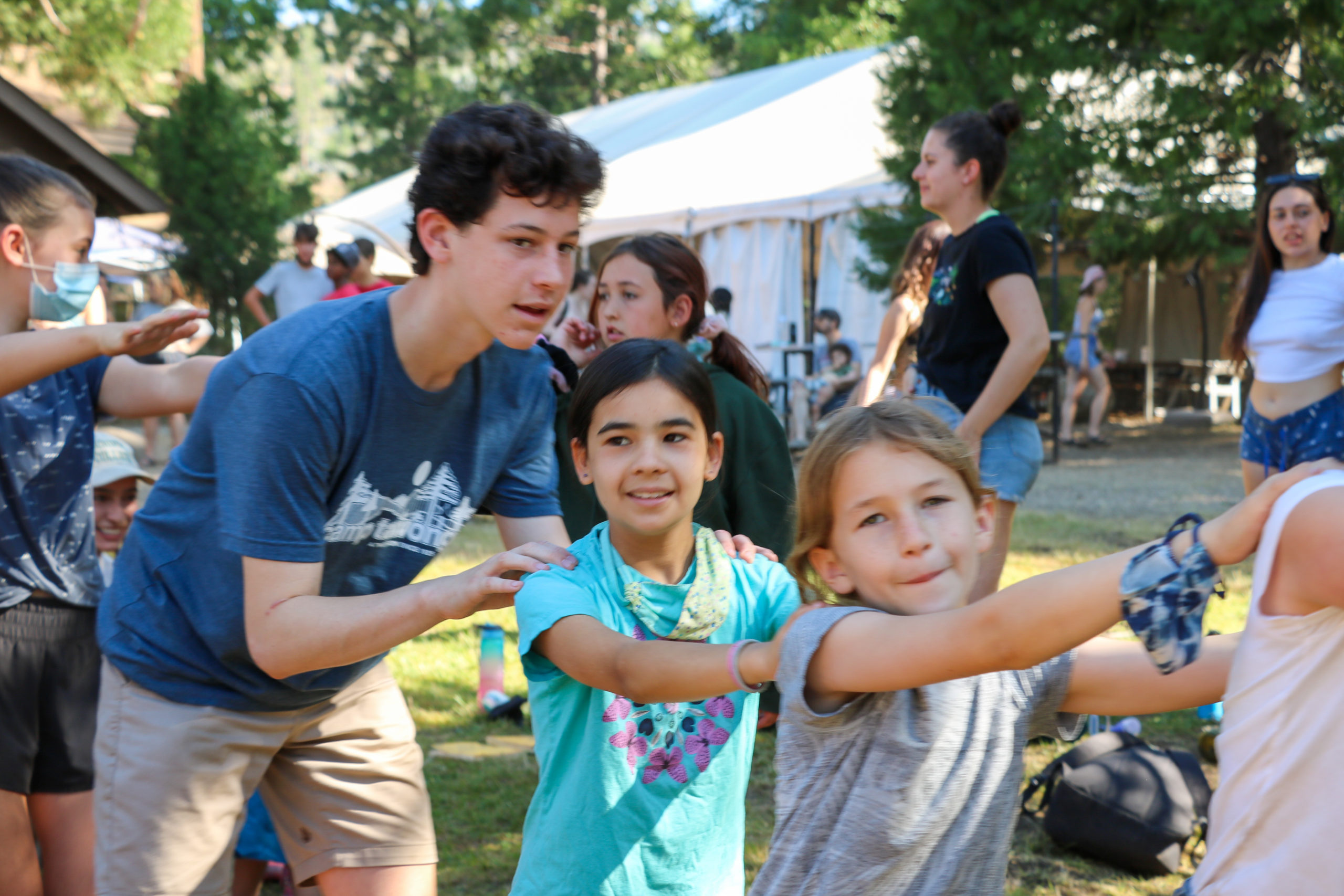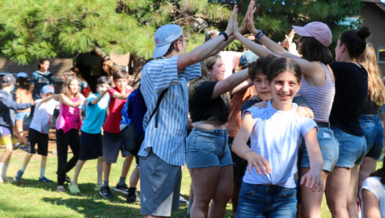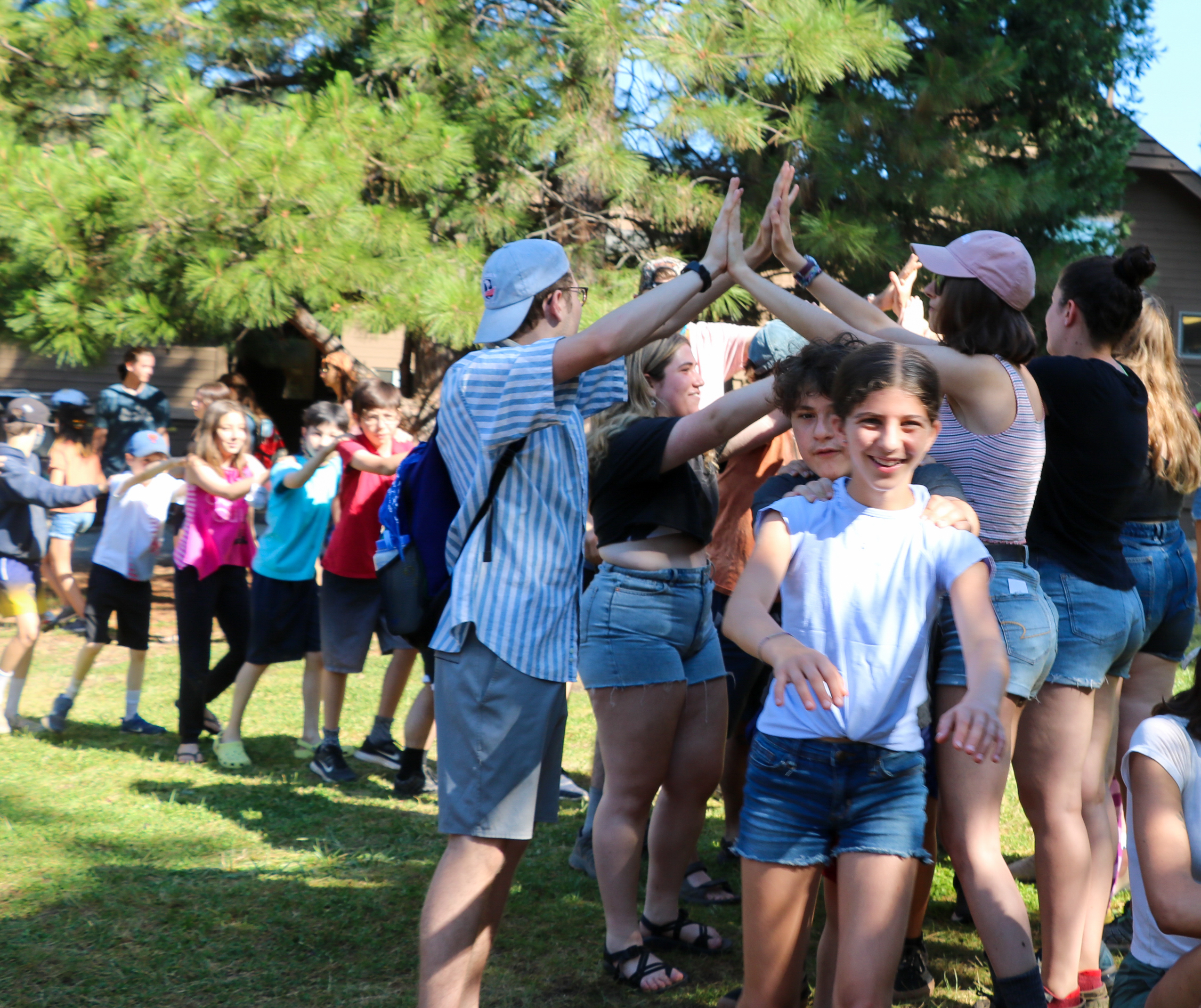 MTA song is a favorite during song session! Counselors make tunnels and campers go through them