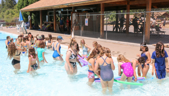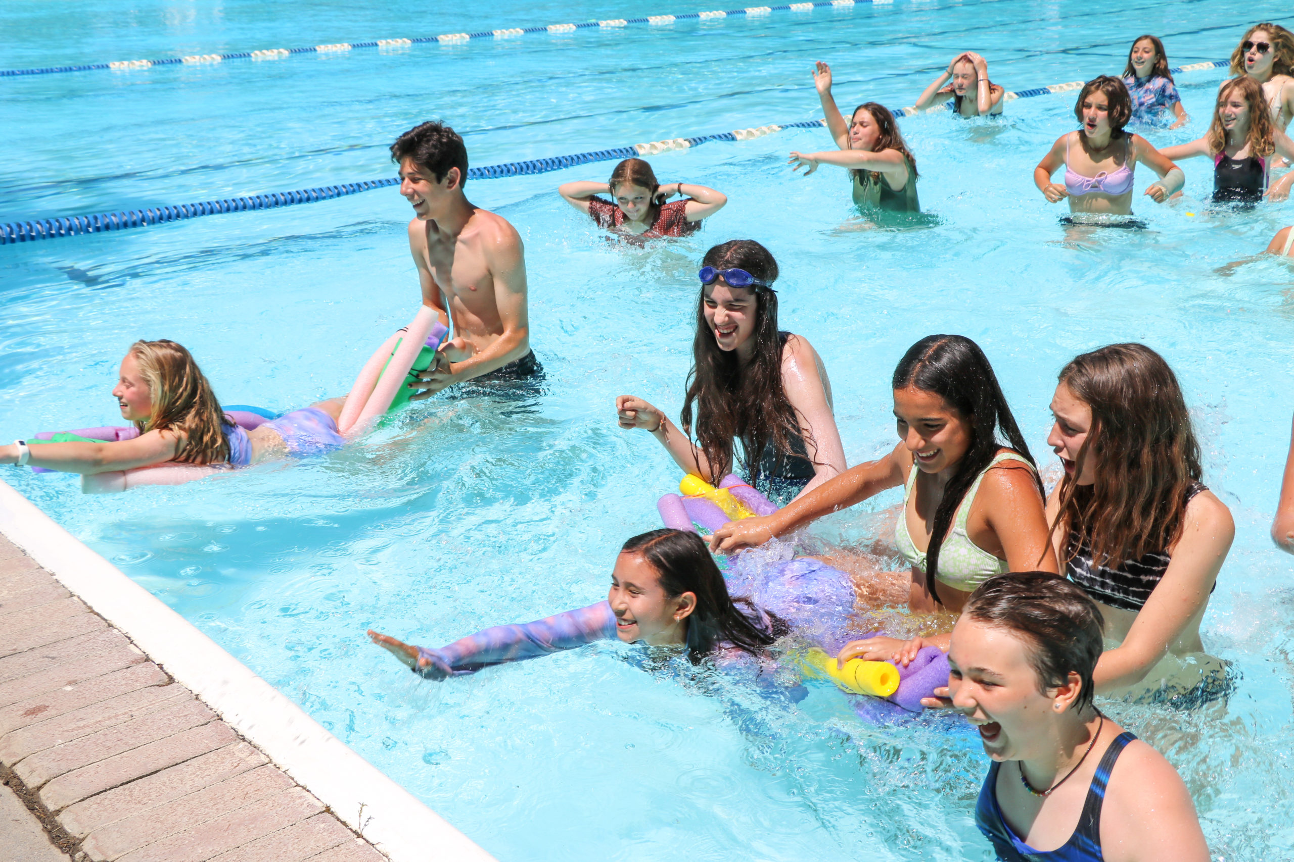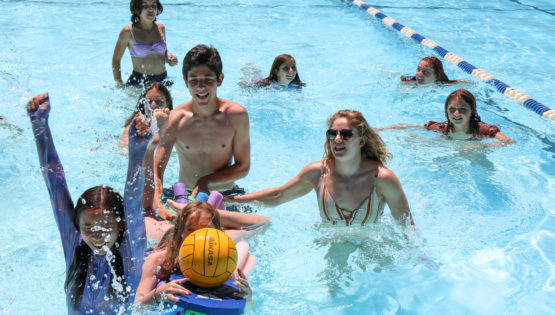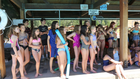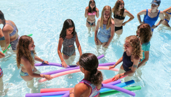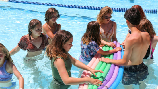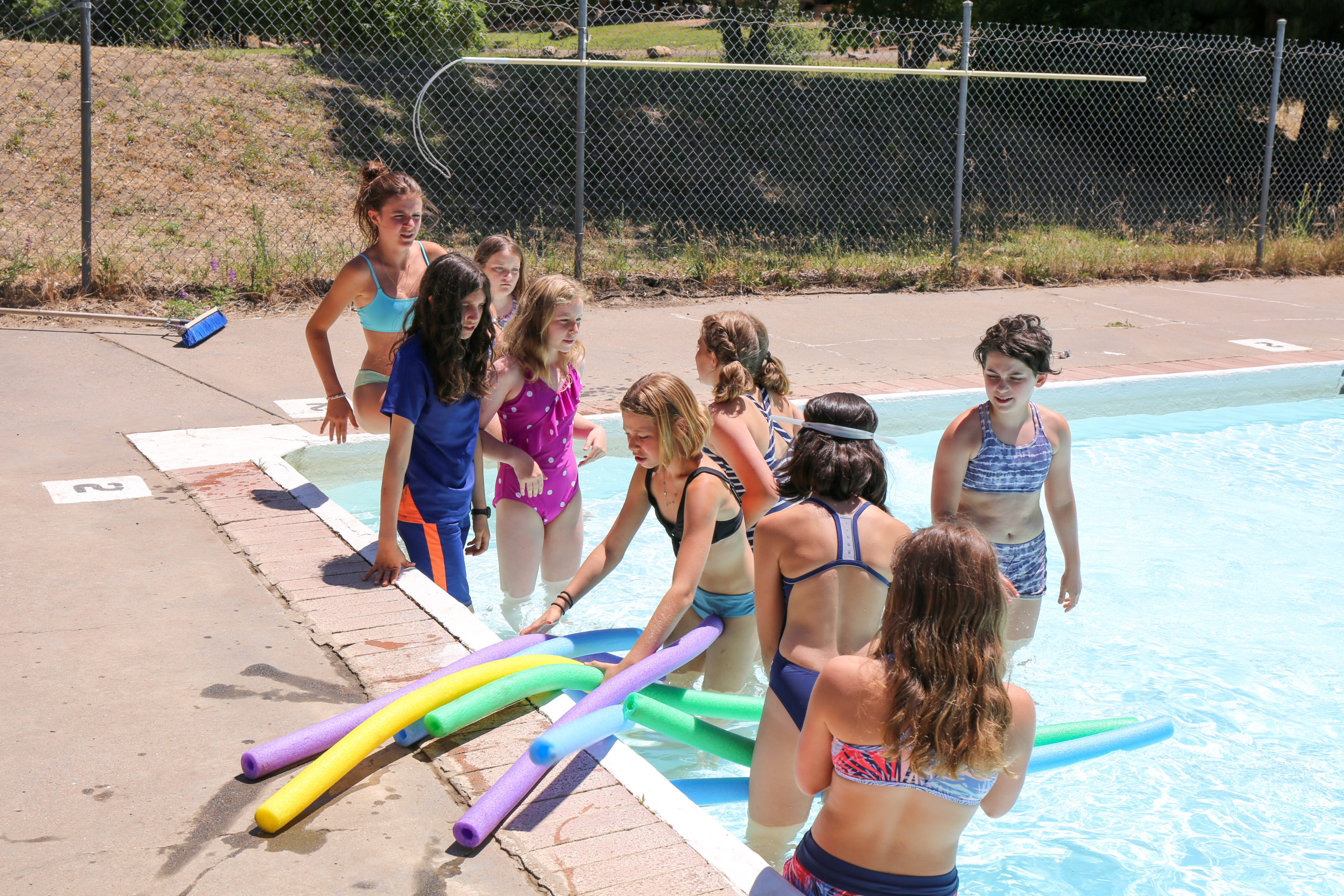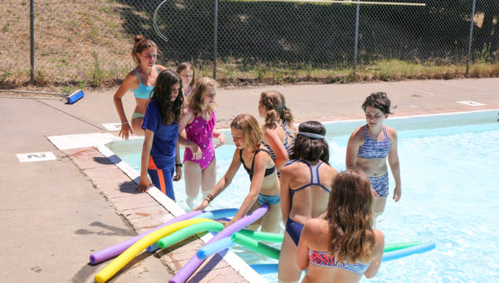 Lifeguard, Allegra, and Lifeguard IT (in-training) explaining the unit swim activity.