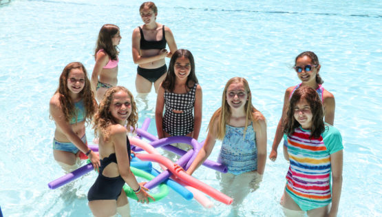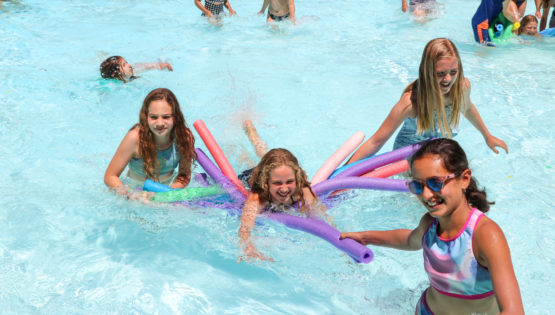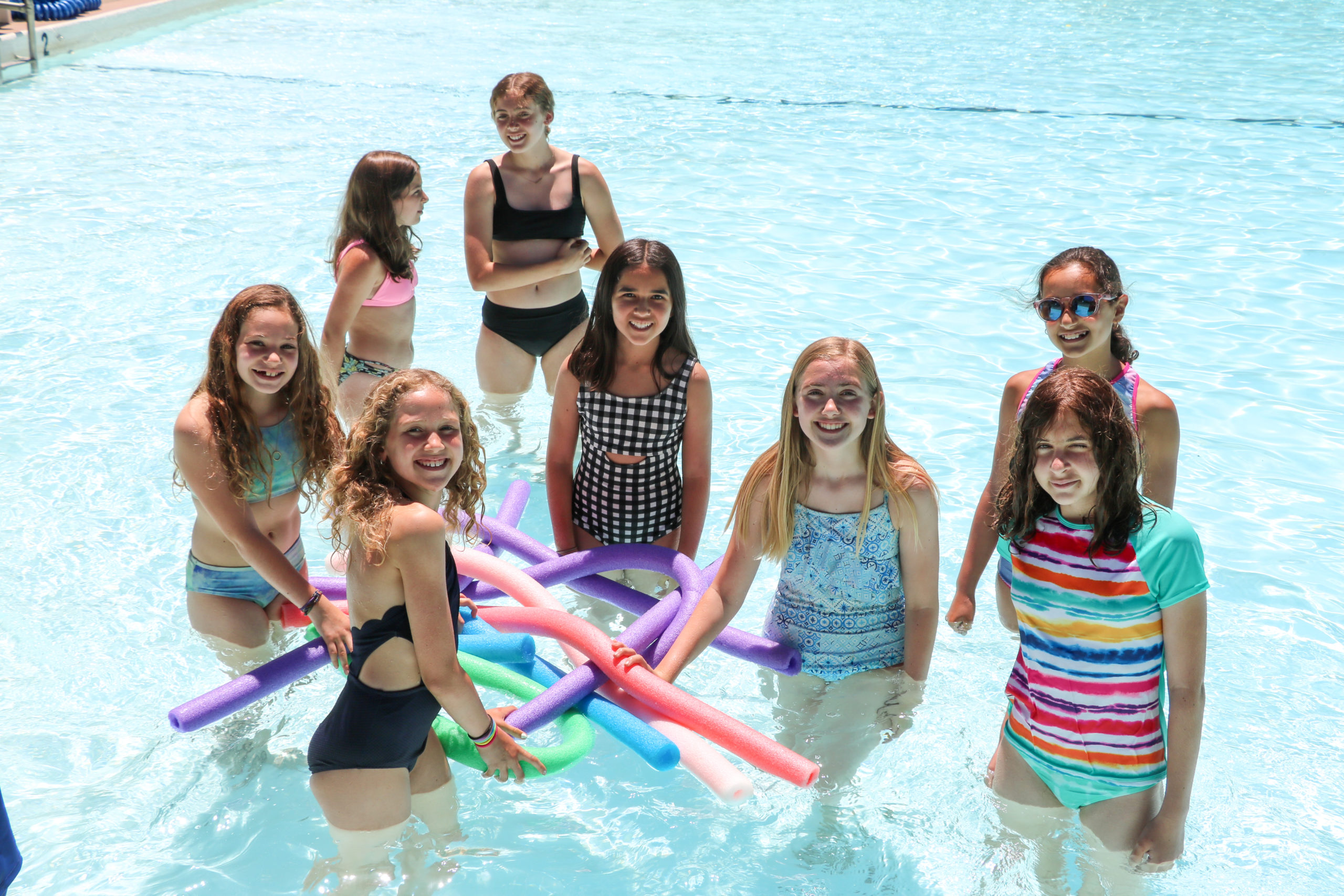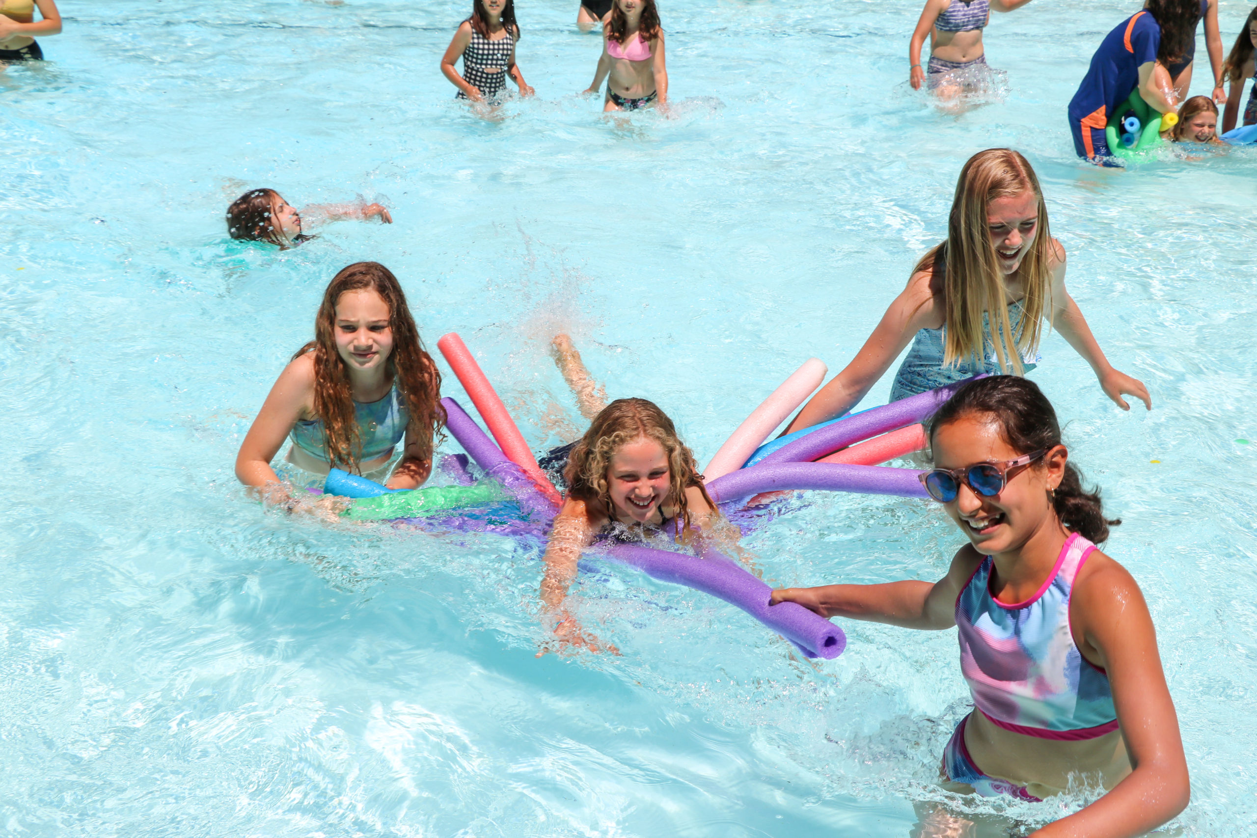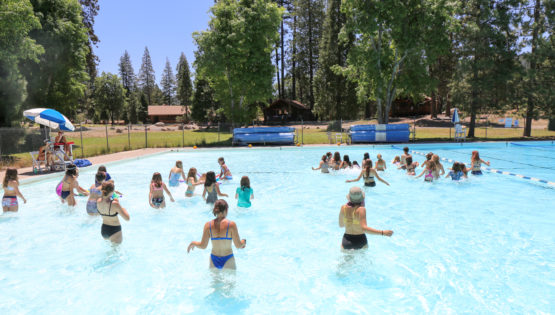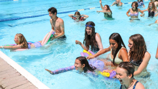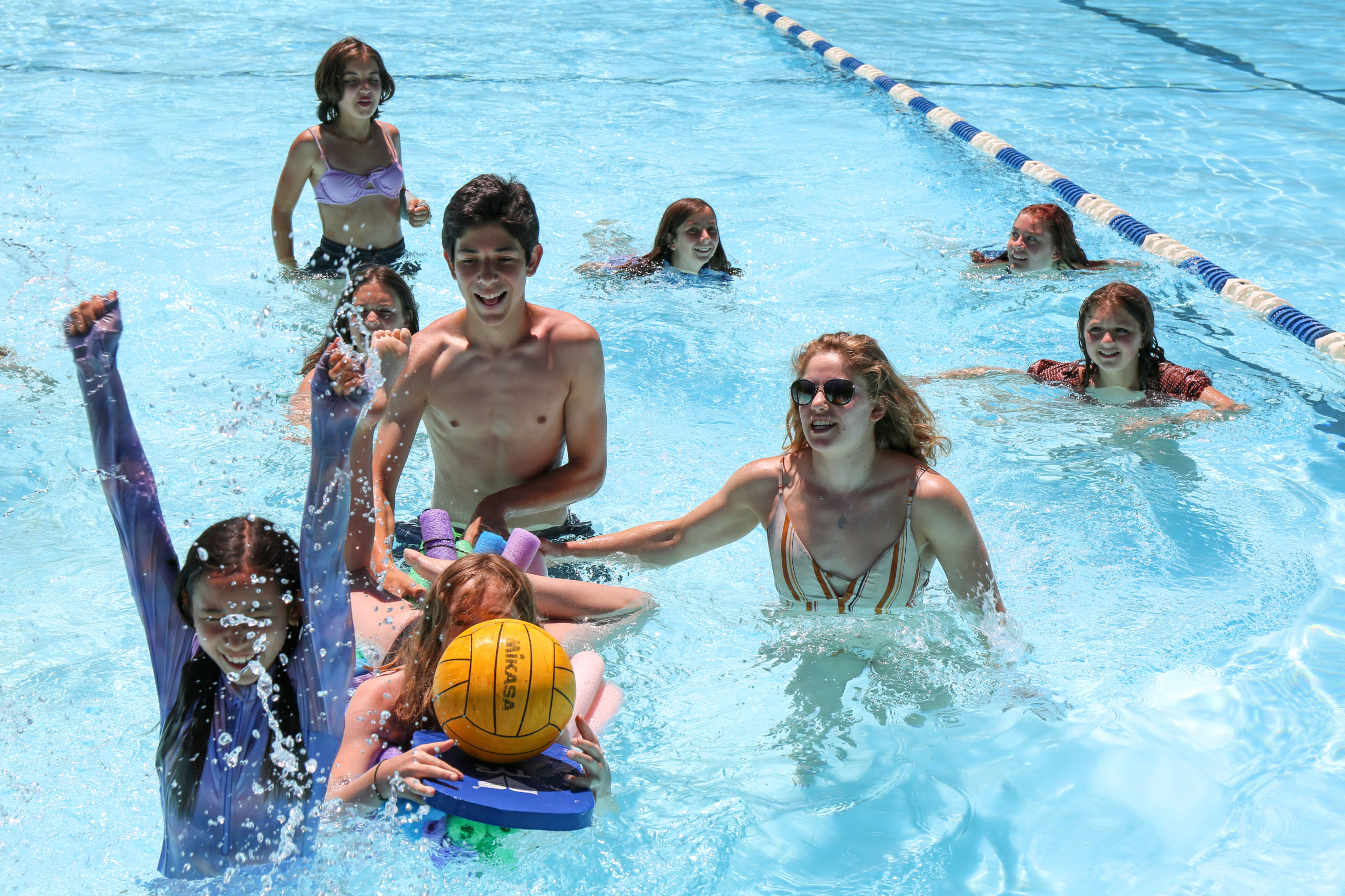 Lifeguard, Allegra, and Lifeguard IT (in-training) explaining the unit swim activity.