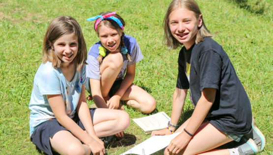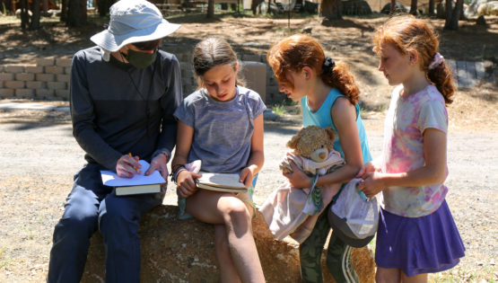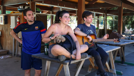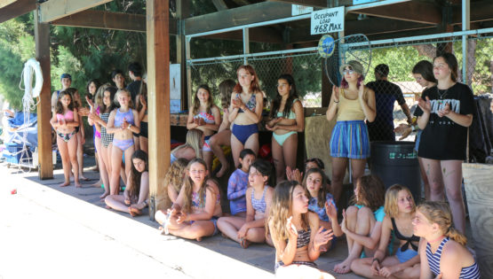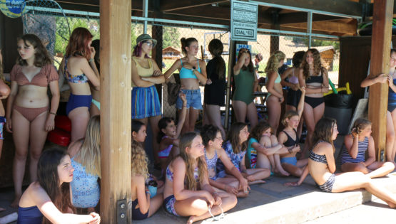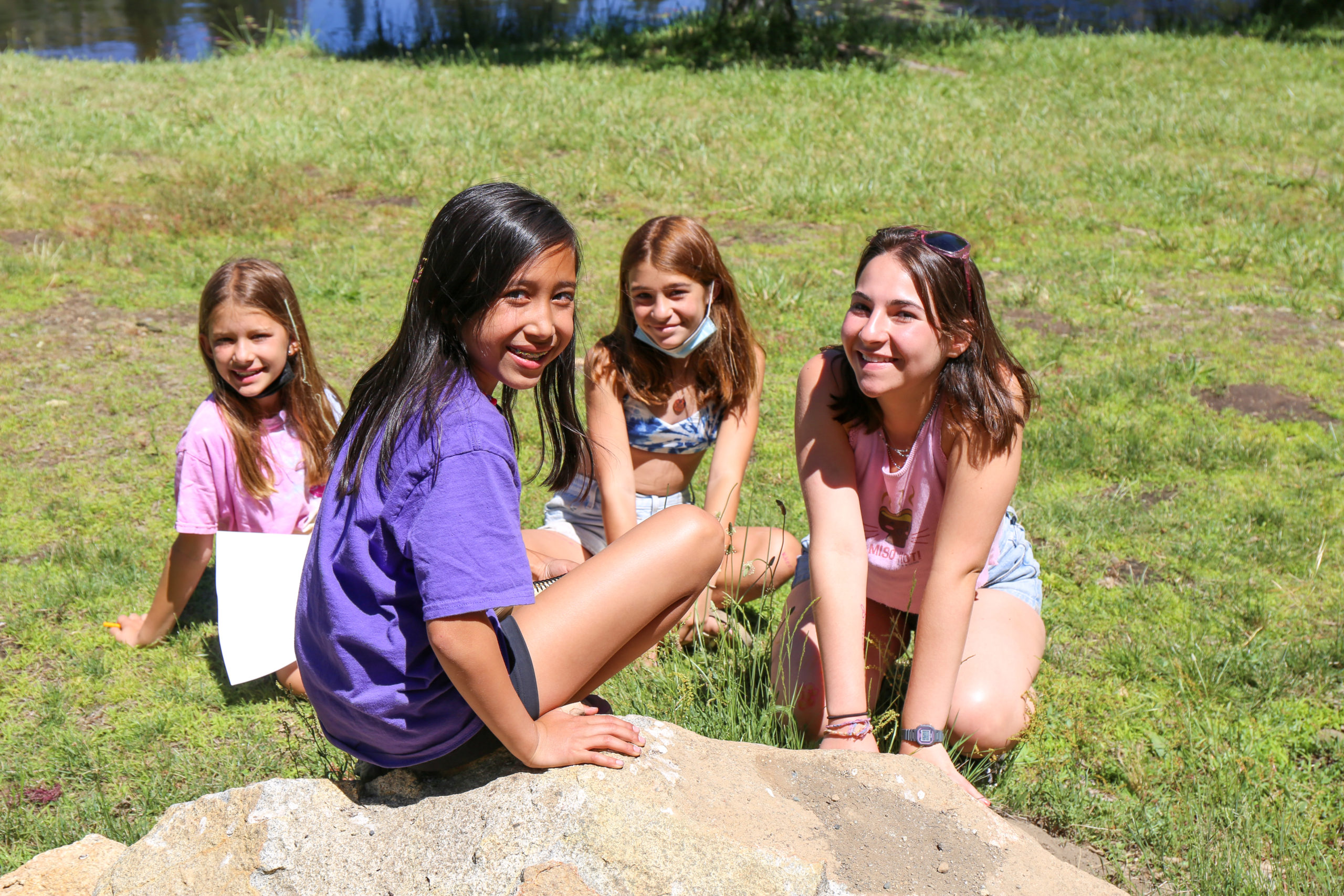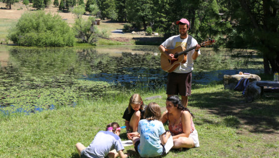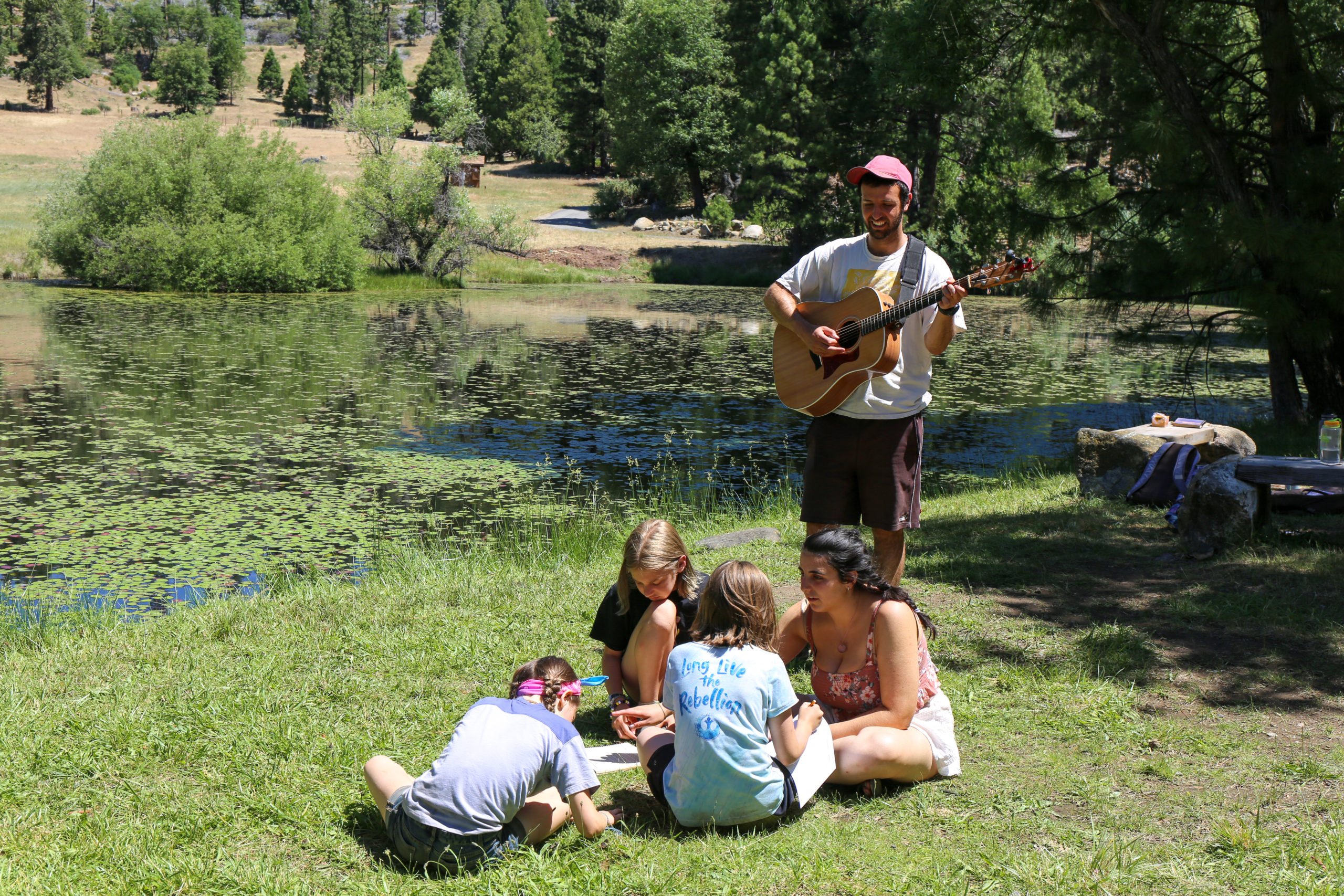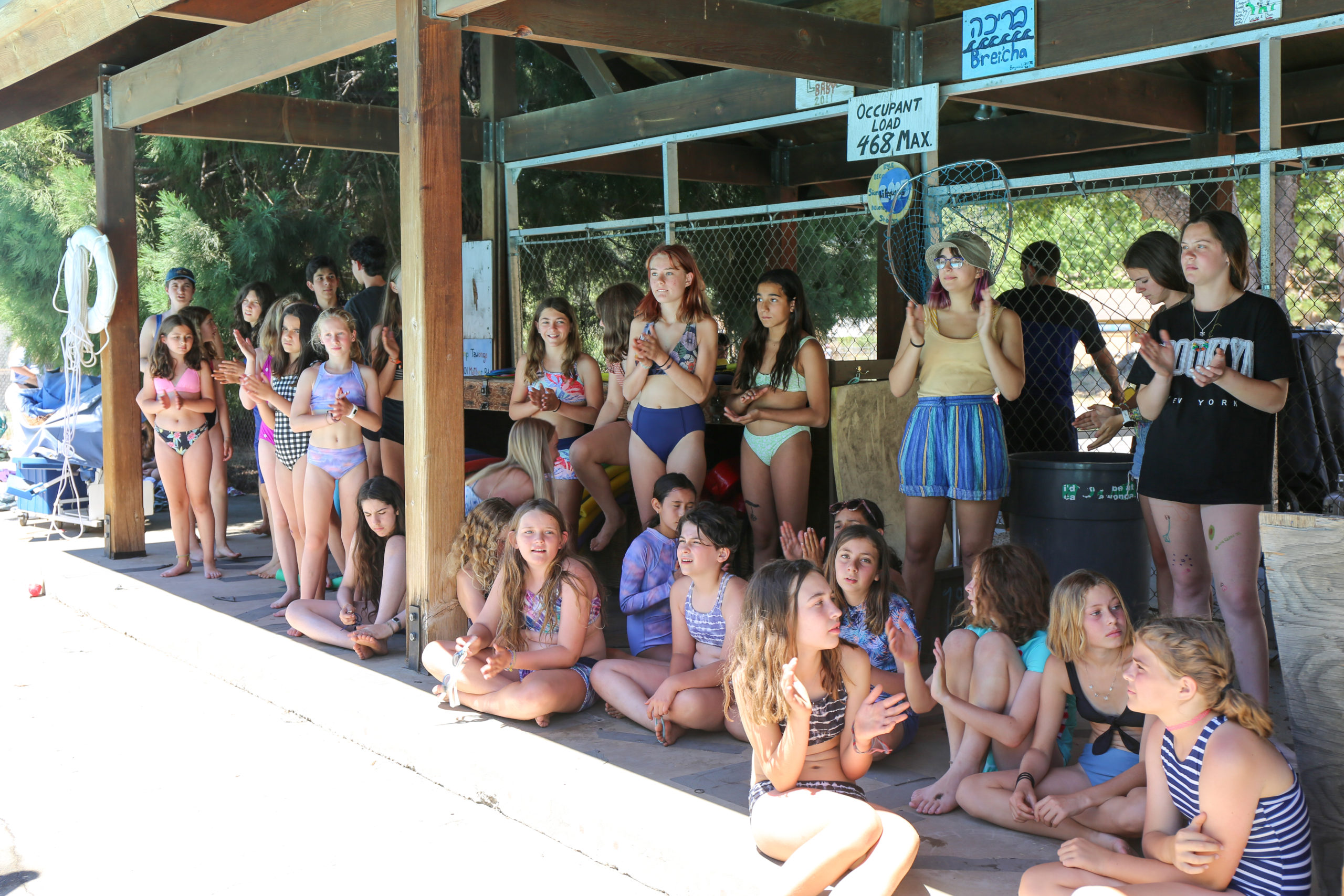 The bunk of G-2 met with song leaders, Elan and Lilah, for a songwriting block by the lake.