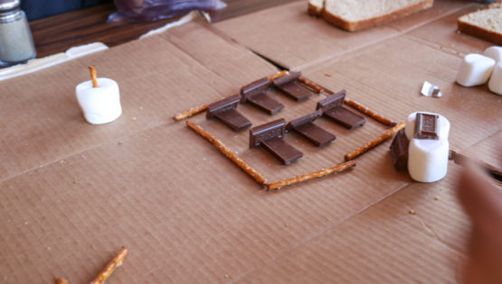 G-6 edible sanctuary activity, learning about shtetls, small towns that existed in Eastern Europe with large Jewish populations, and then making miniature models out of food