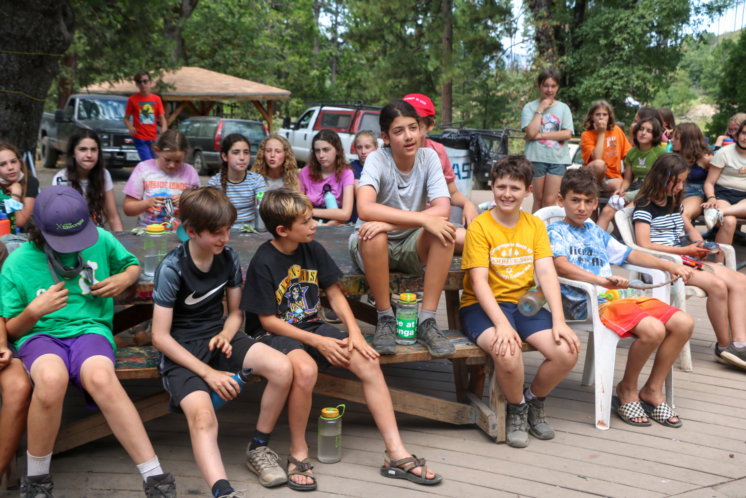On an especially hot day like today, counselors always make sure that campers stay hydrated, wear sunscreen and cool off in the pool or the beautiful Tuolumne river.