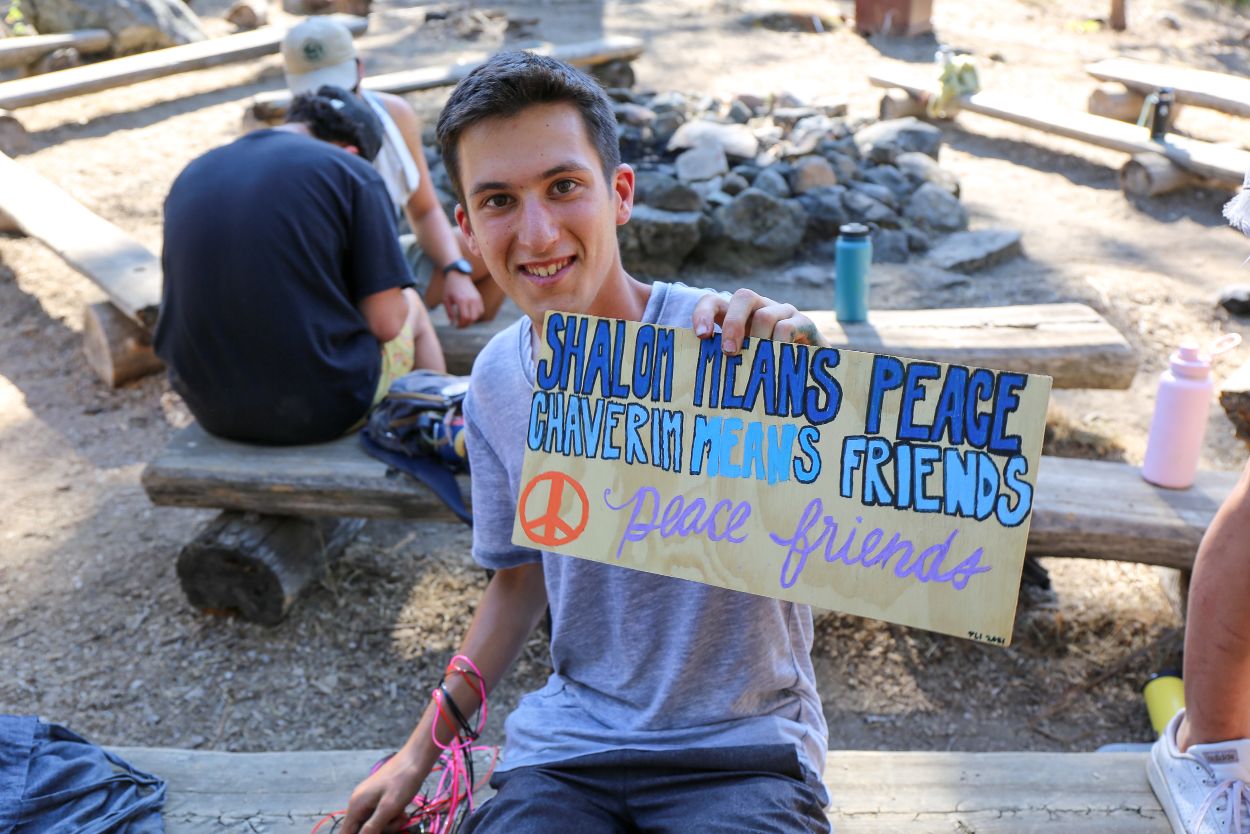 "Shalom means peace, chaverim means friends. Peace friends"
