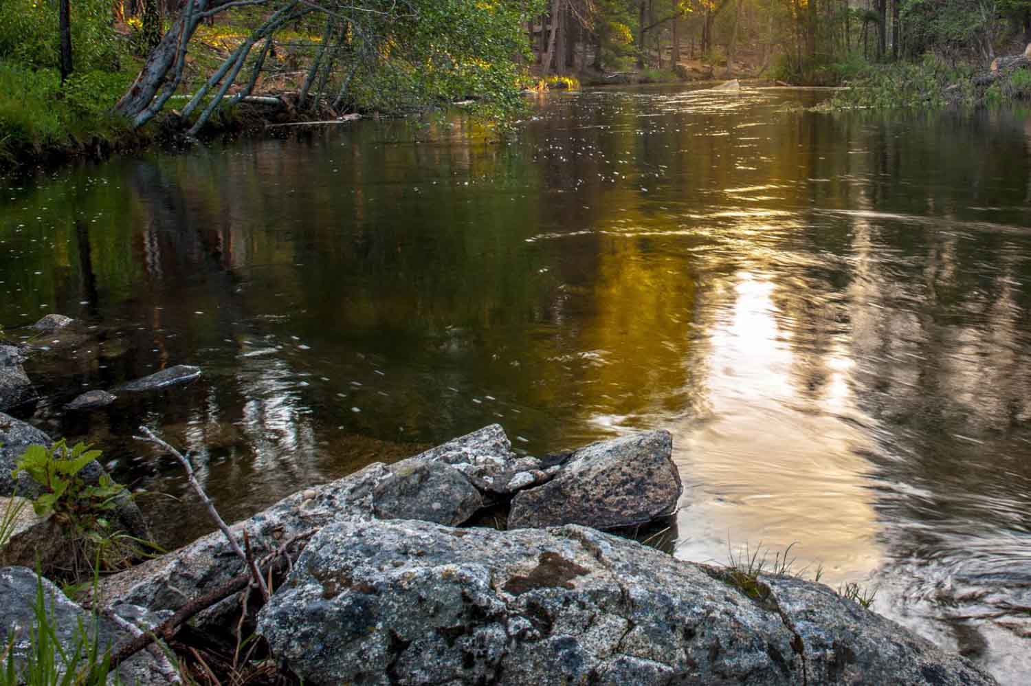 The Tuolumne River, which runs through Camp Tawonga. Campers love spending time at the river with their bunks, swimming and sunning on the rocks and just enjoying the beauty of nature!