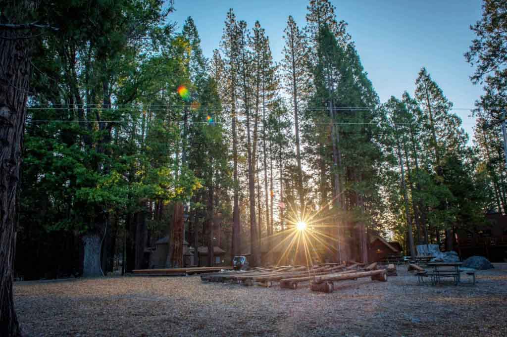 The sun coming through the trees behind the stage in Tawonga’s “Golden Triangle” area.